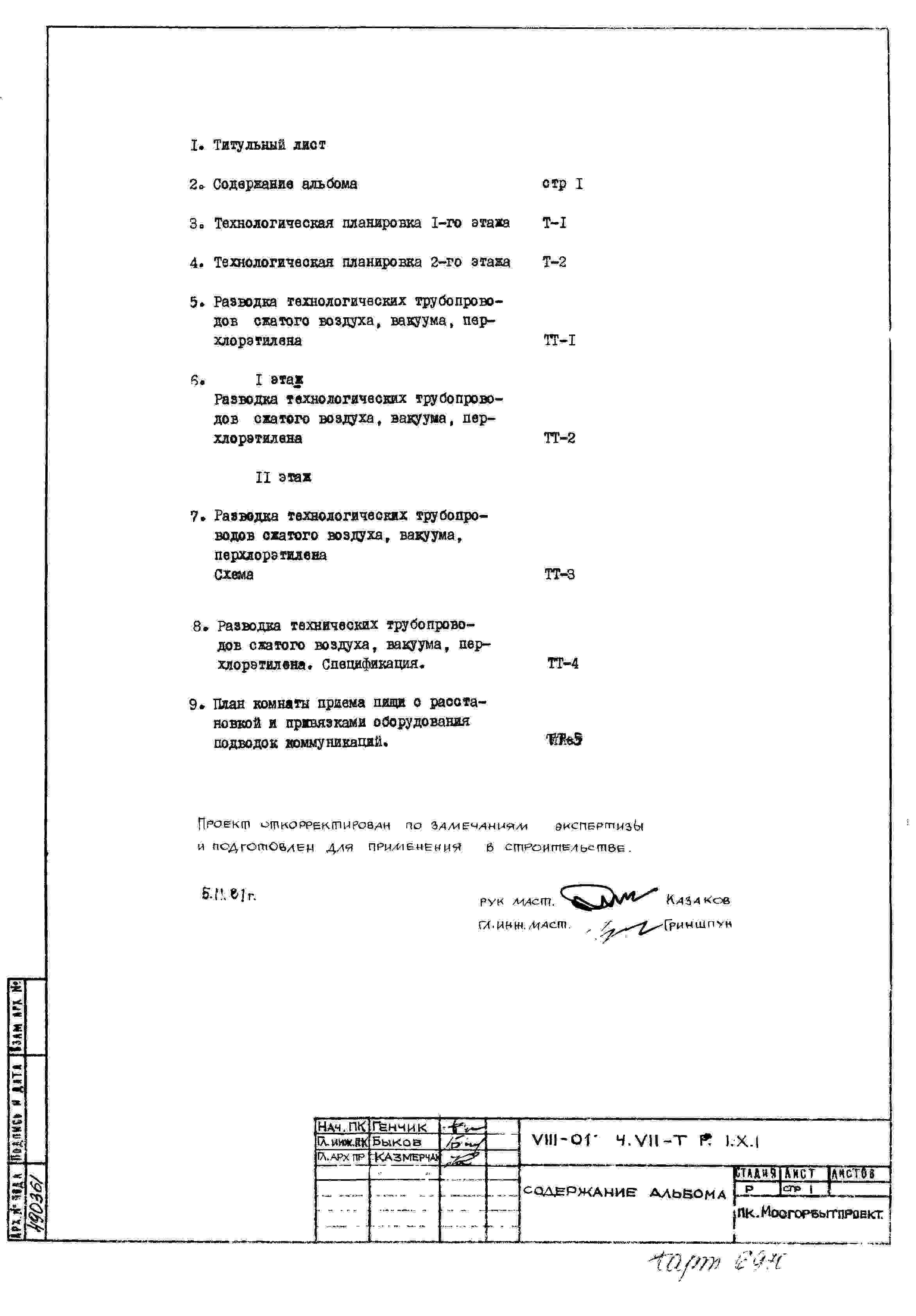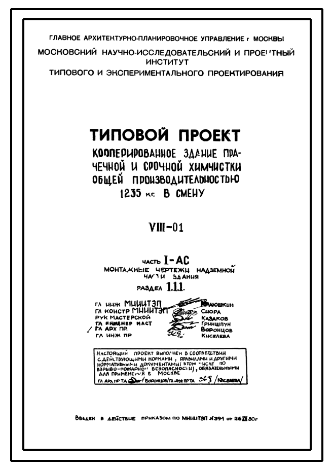 Типовой проект VIII-01 Кооперированное здание прачечной и срочной химчистки общей производительностью 1235 кг белья в смену