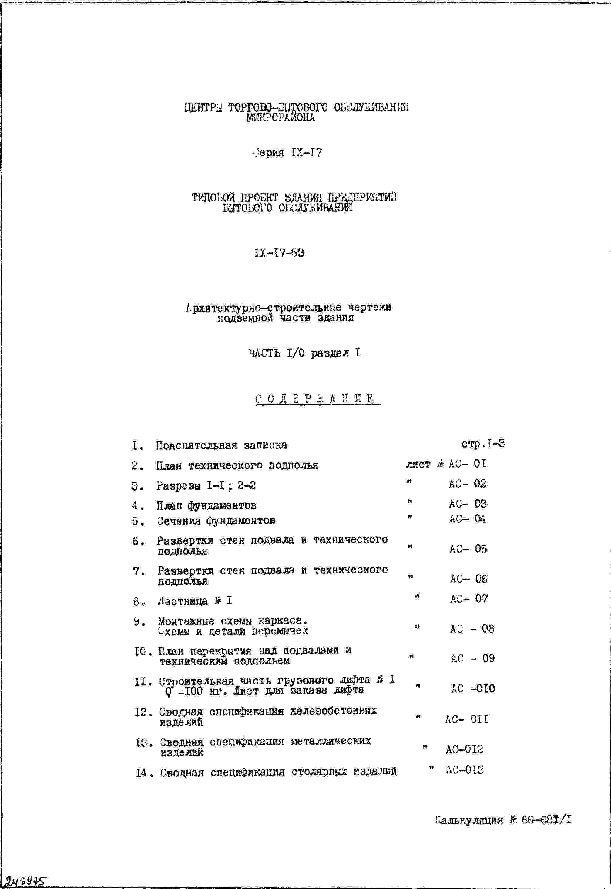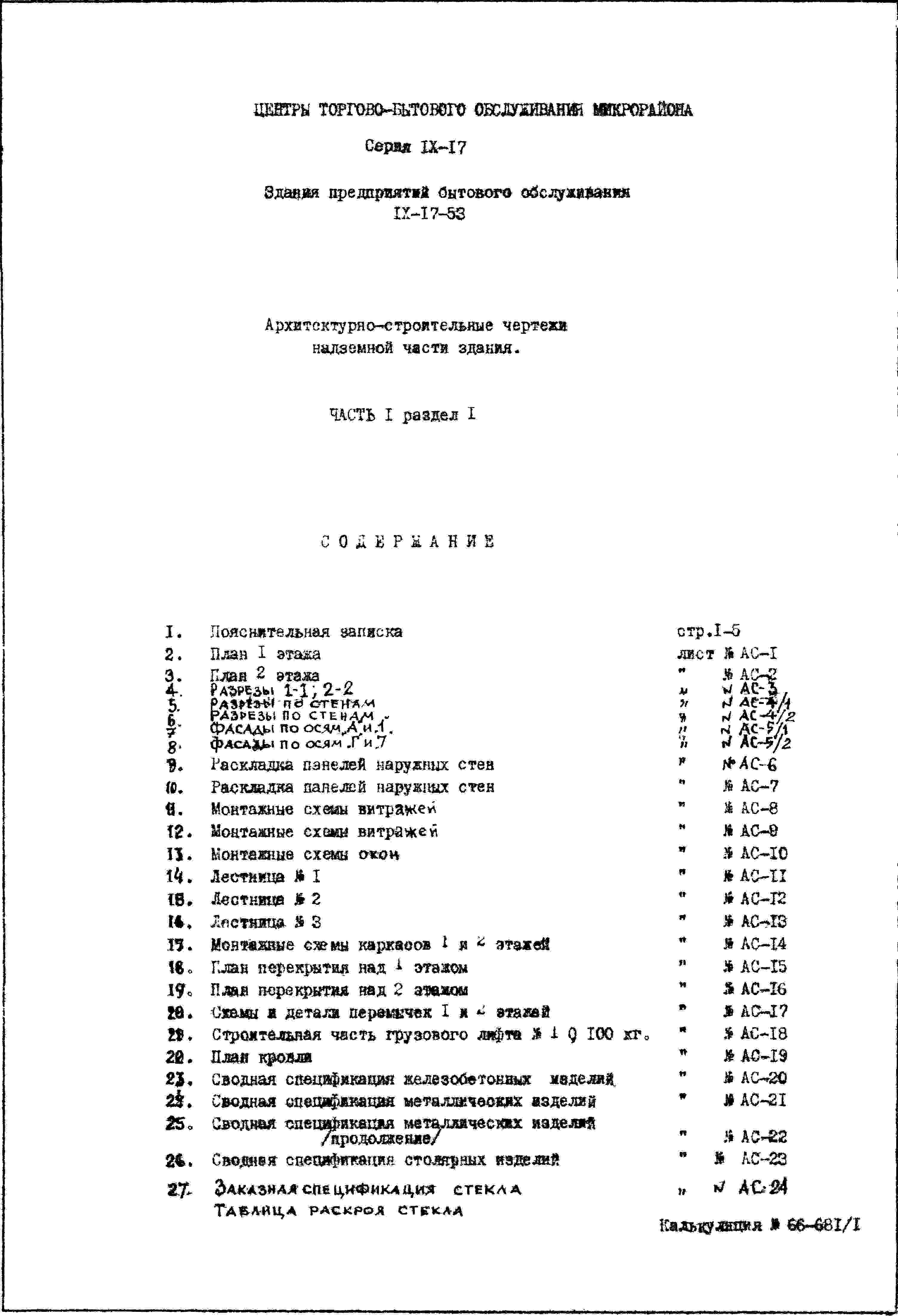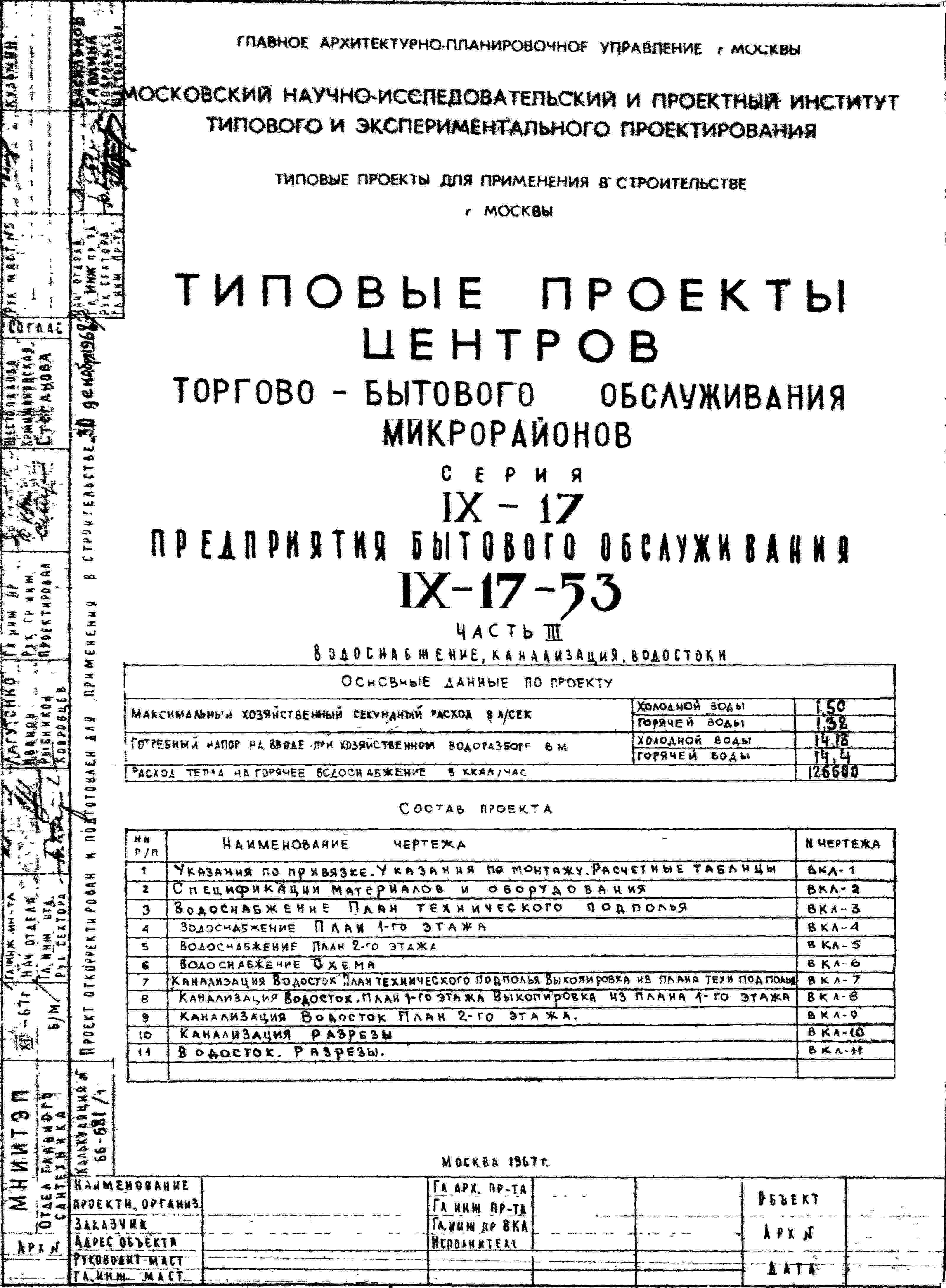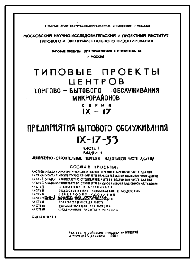 Типовой проект IX-17-53 Дом быта (центр торгово-бытового обслуживания микрорайона) для строительства в г. Москва