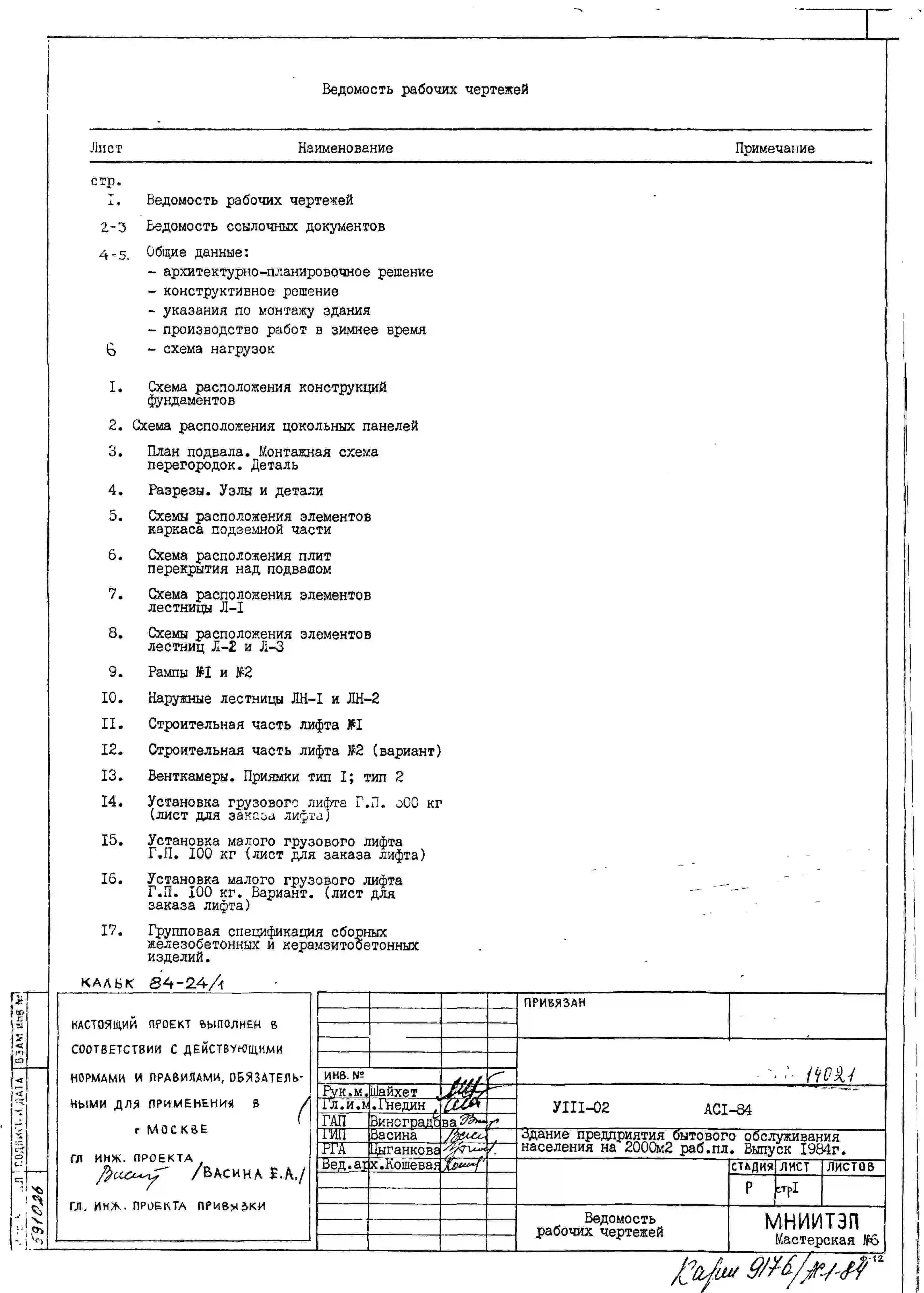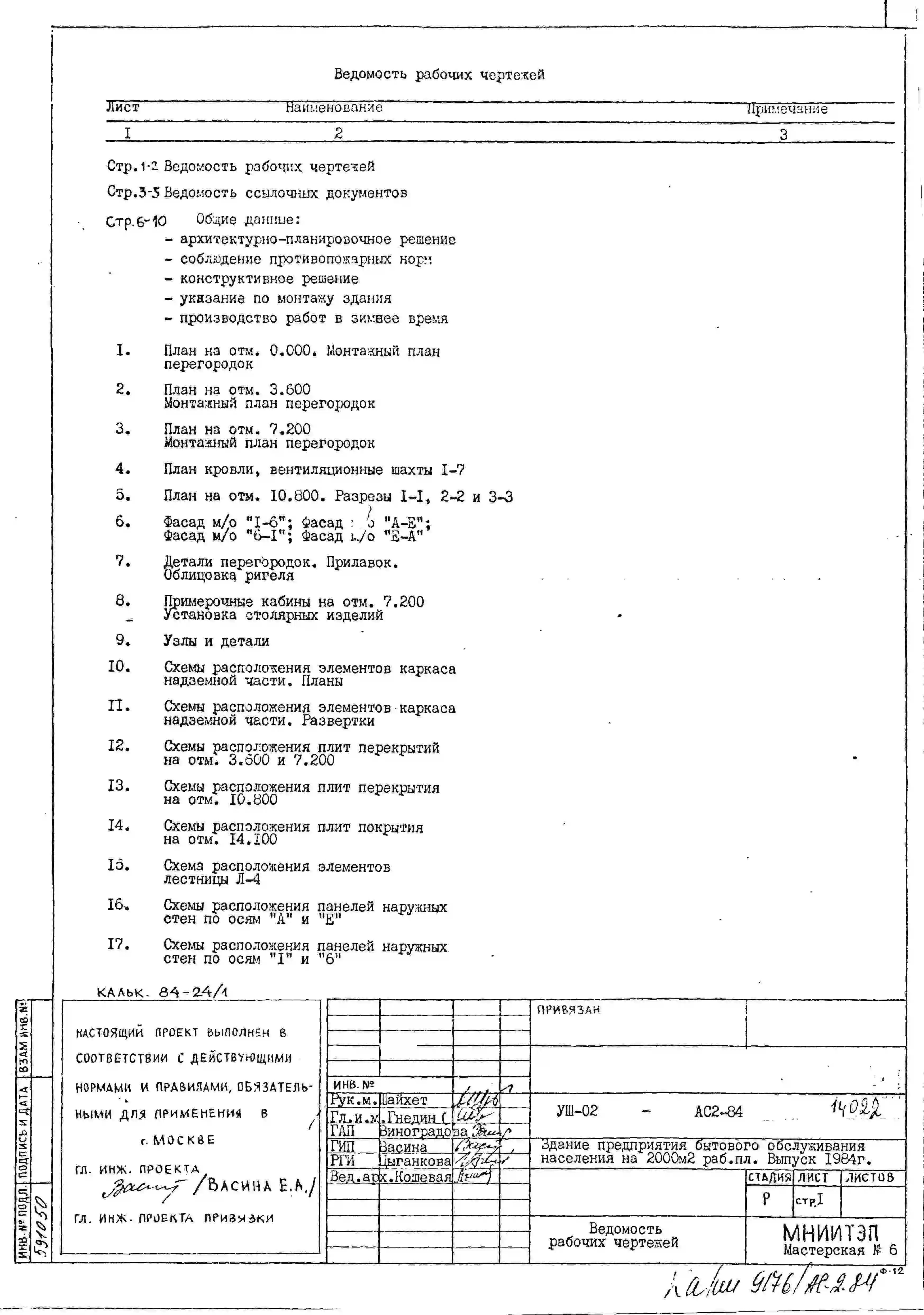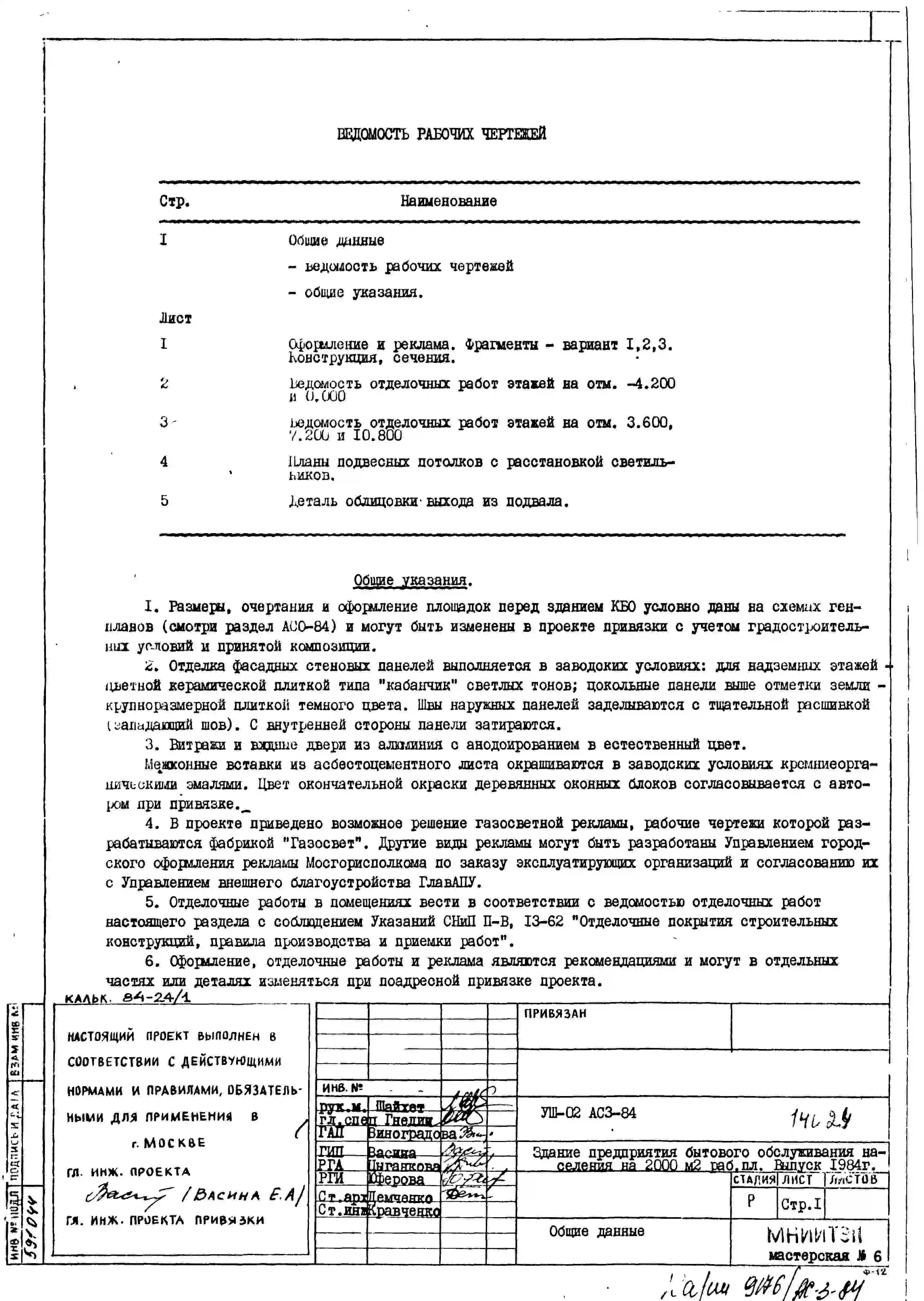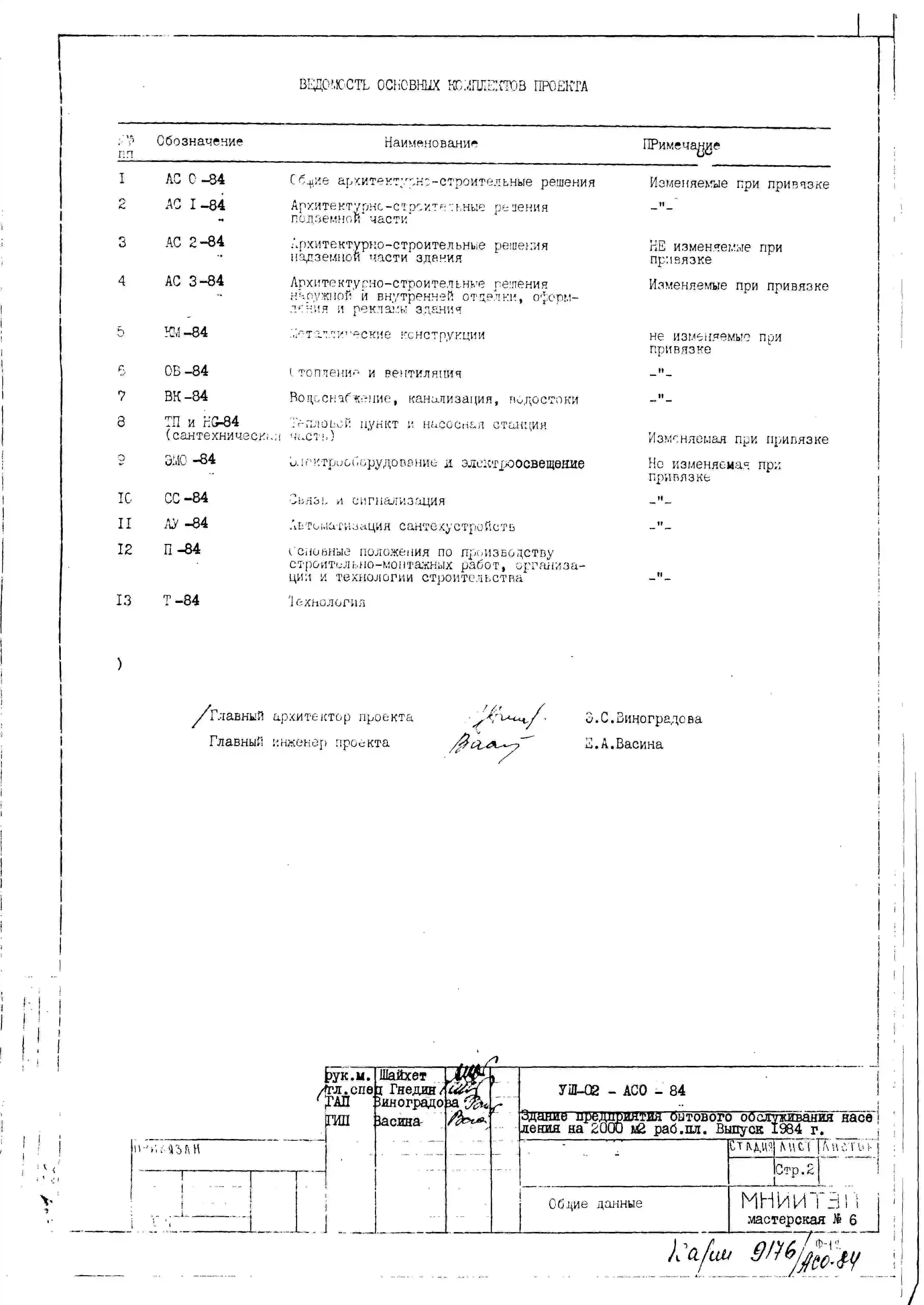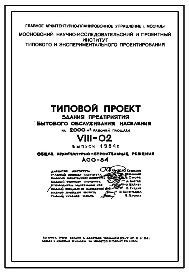 Типовой проект VIII-02 Секционное здание коммунально-бытового обслуживания жилых районов и жилых районов на 2000 м2 рабочей площади Выпуск 1984 года