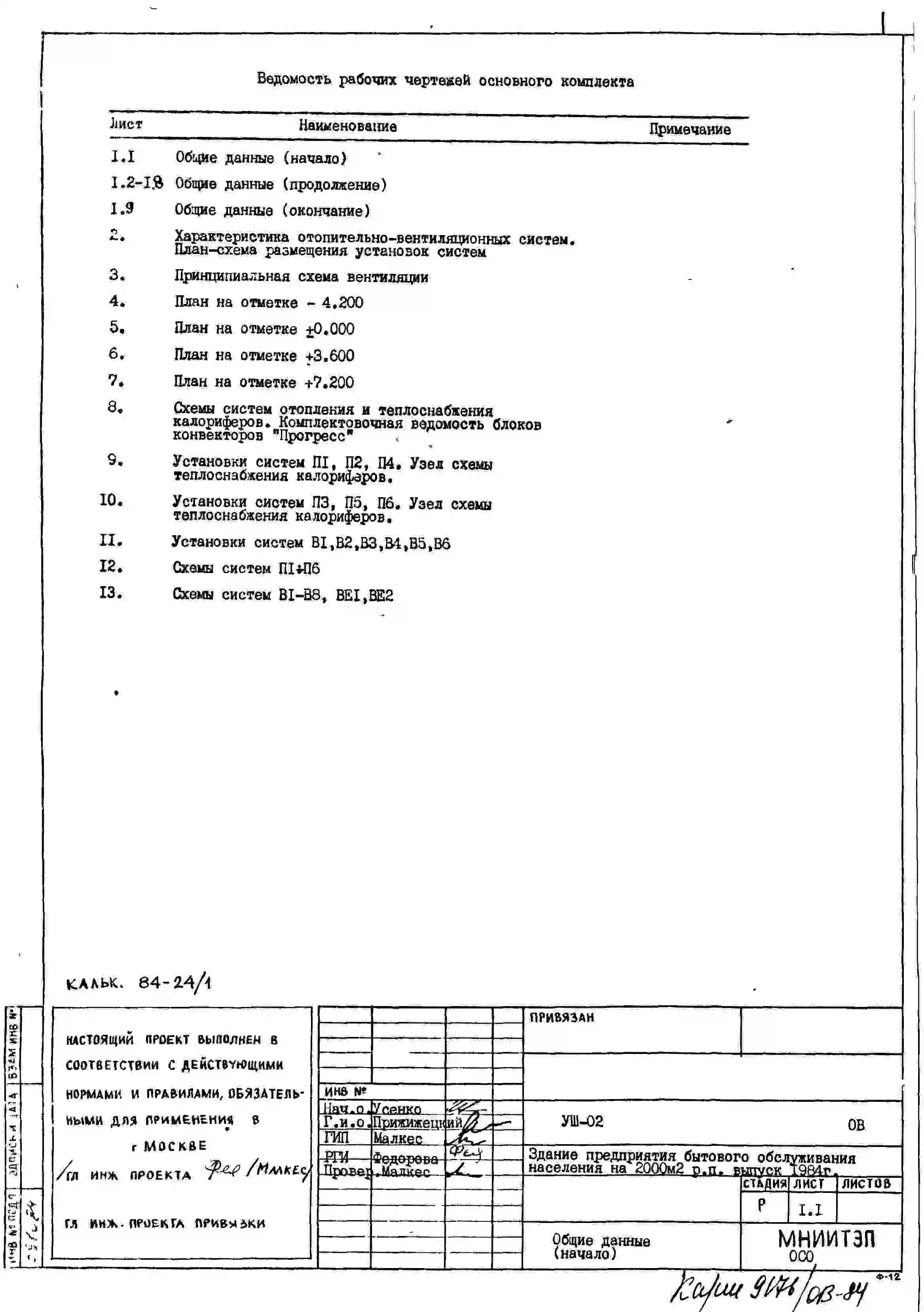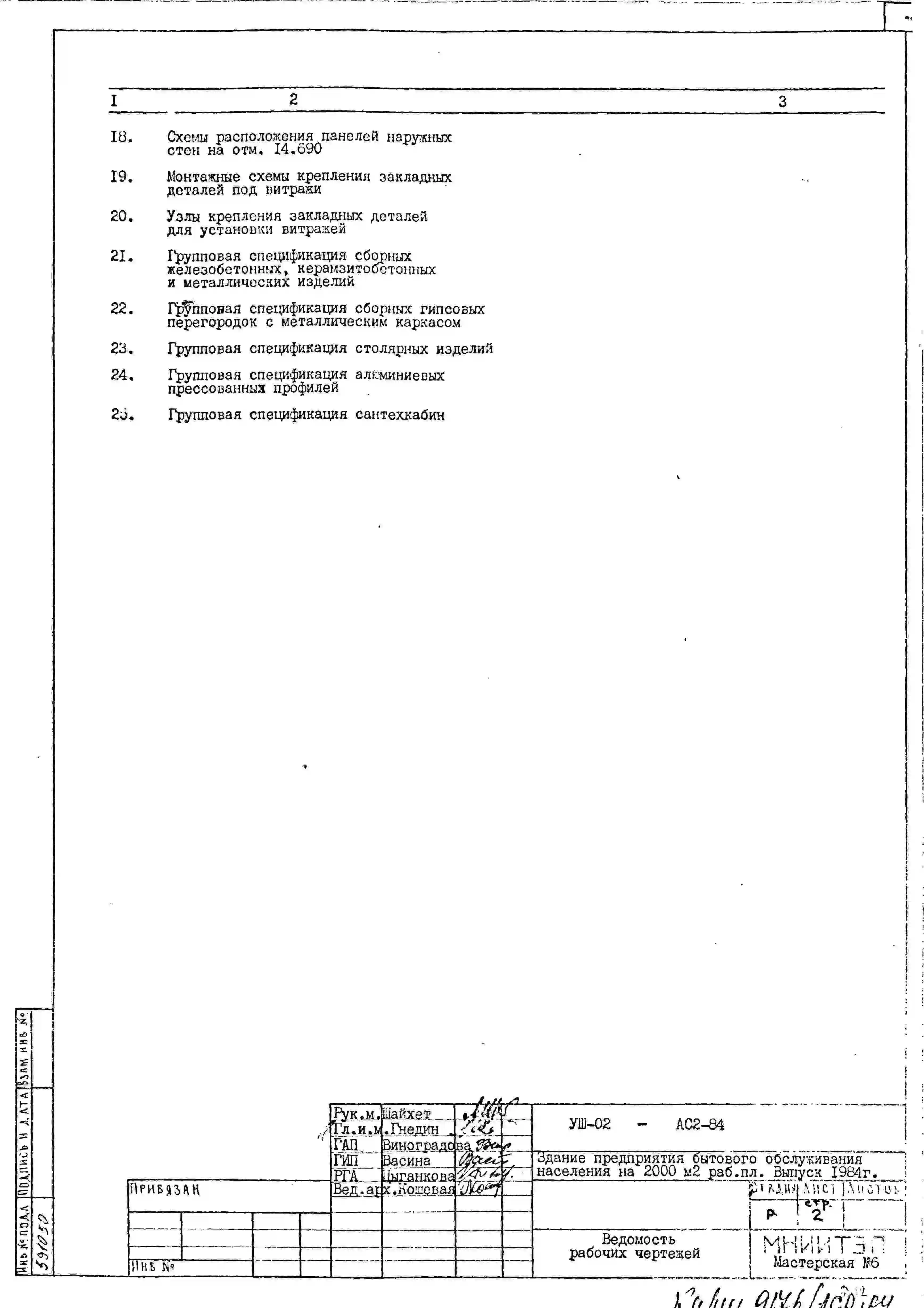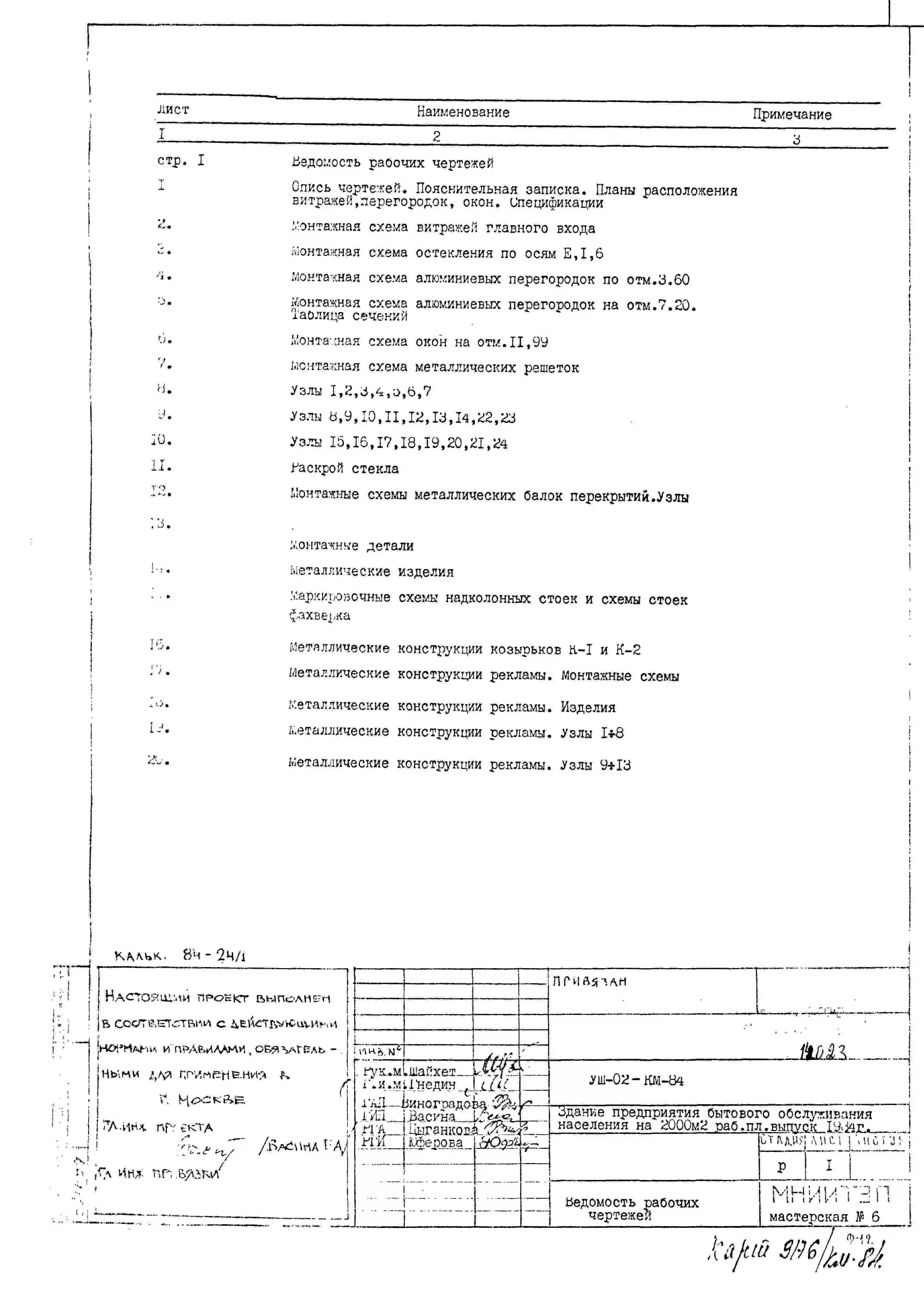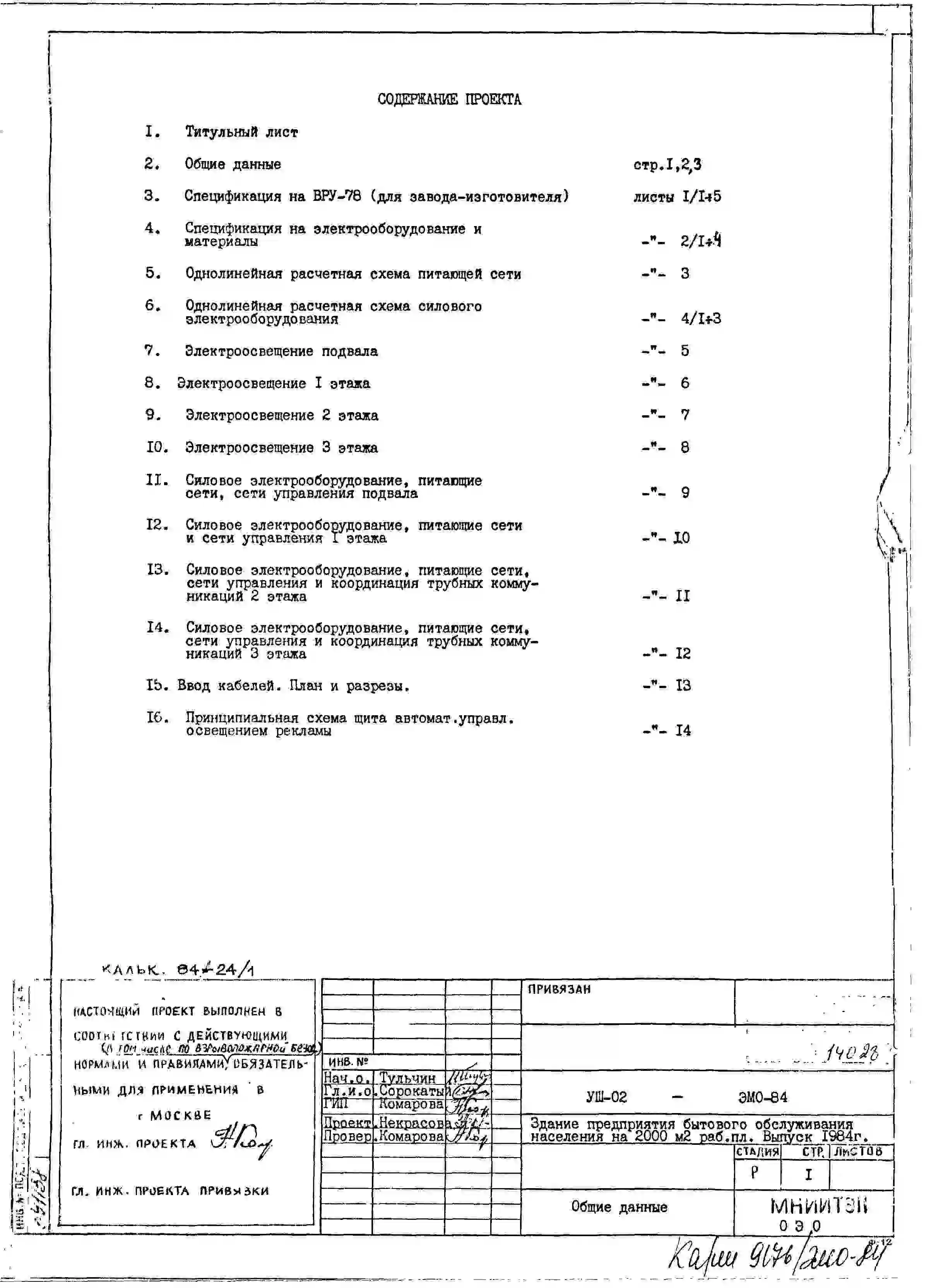 Типовой проект VIII-02 Секционное здание коммунально-бытового обслуживания жилых районов и жилых районов на 2000 м2 рабочей площади Выпуск 1984 года
