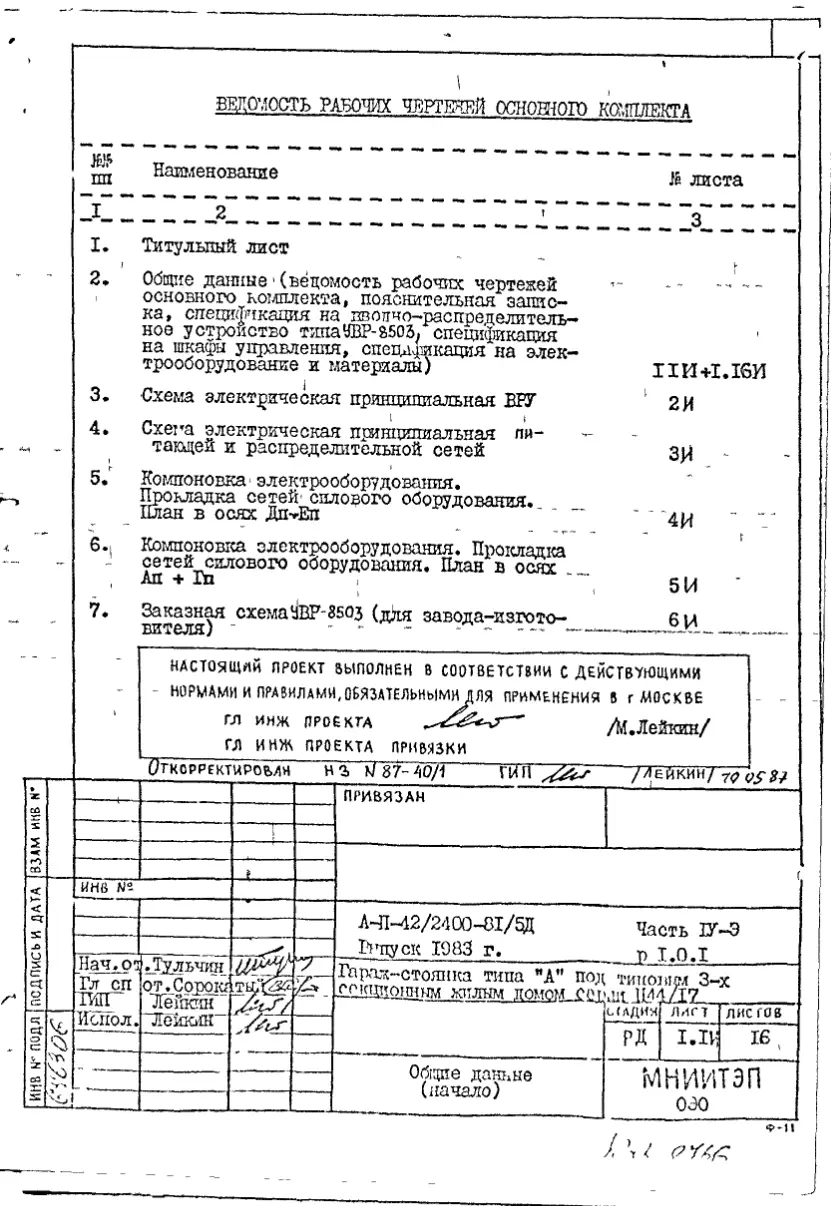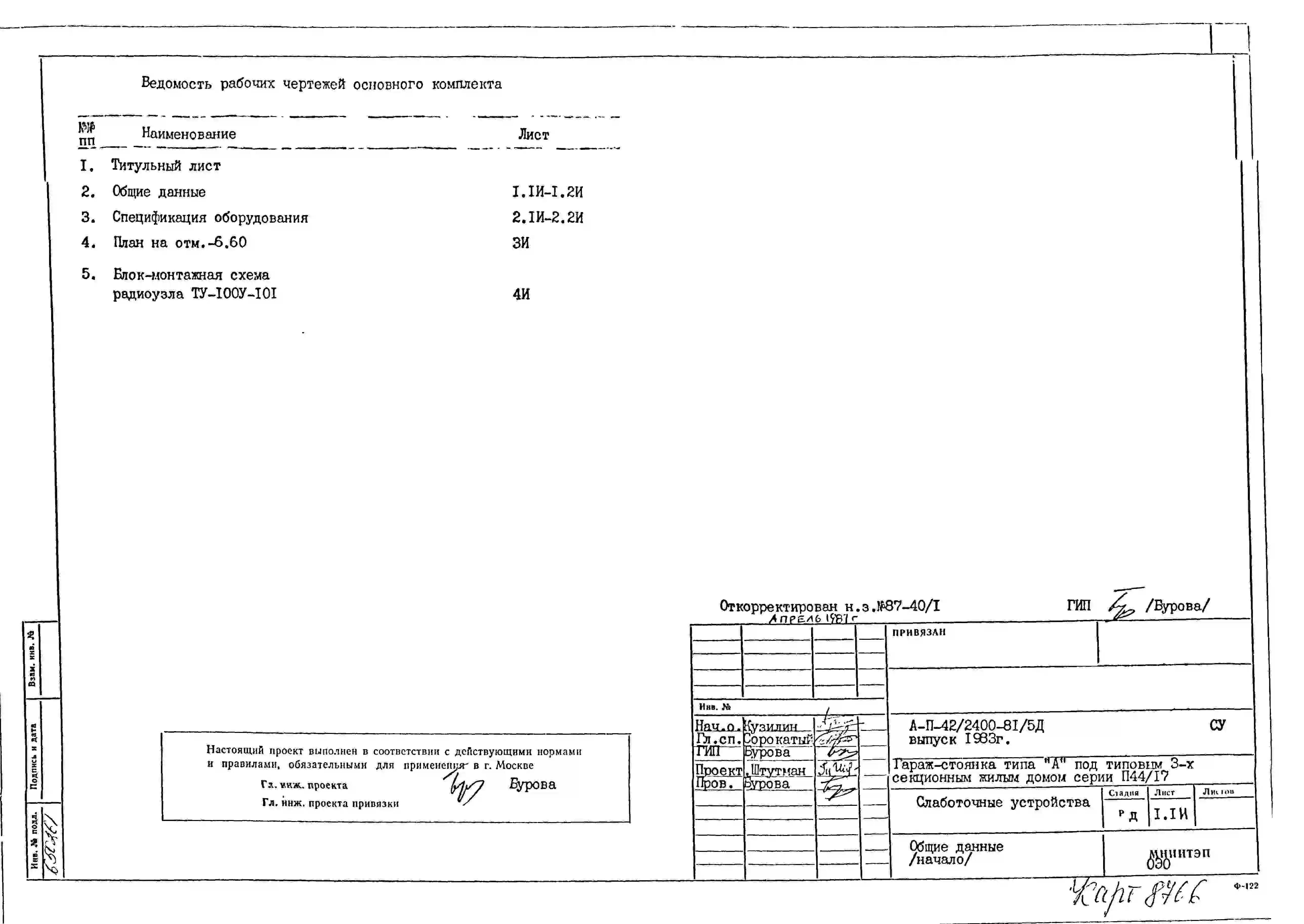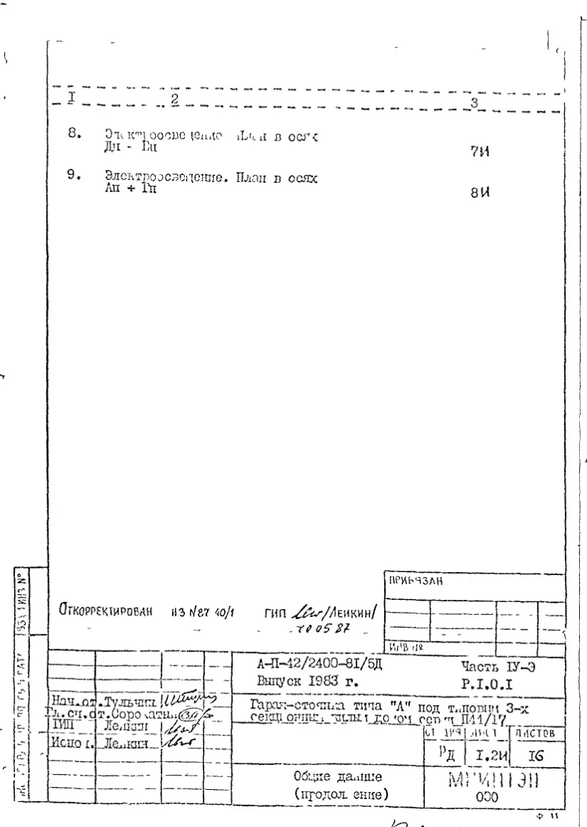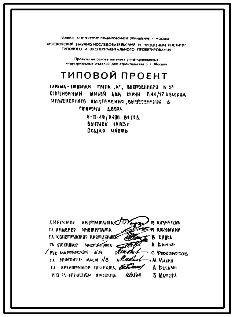 Типовой проект А-II-42/2400-81/5Д Гараж-стоянка типа «А» под 3-х секционным жилым домом П-44/17 с блоком инженерного обеспечения, вынесенным в сторону двора