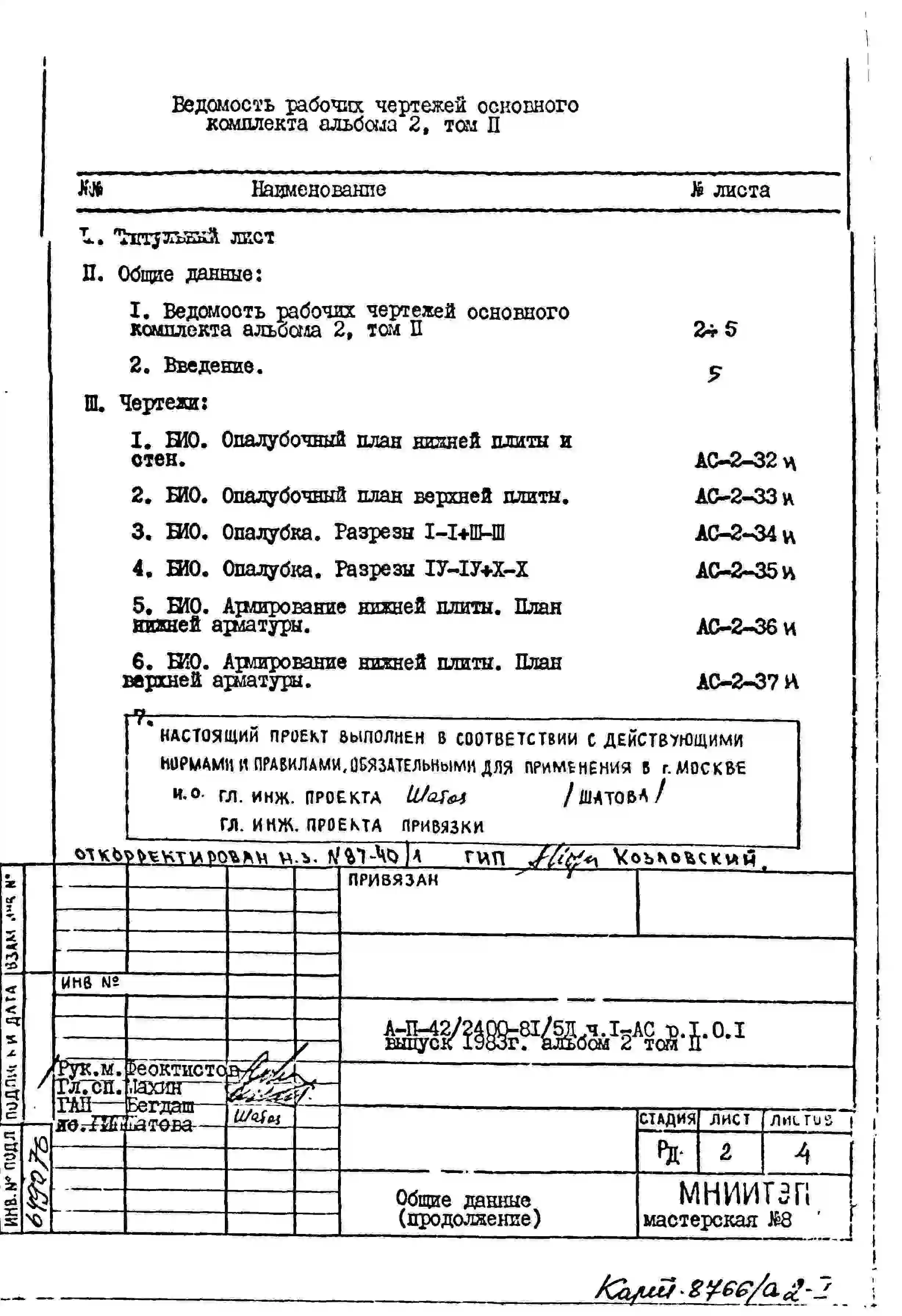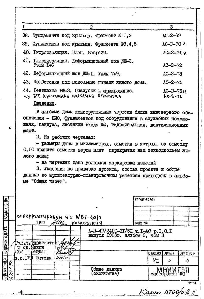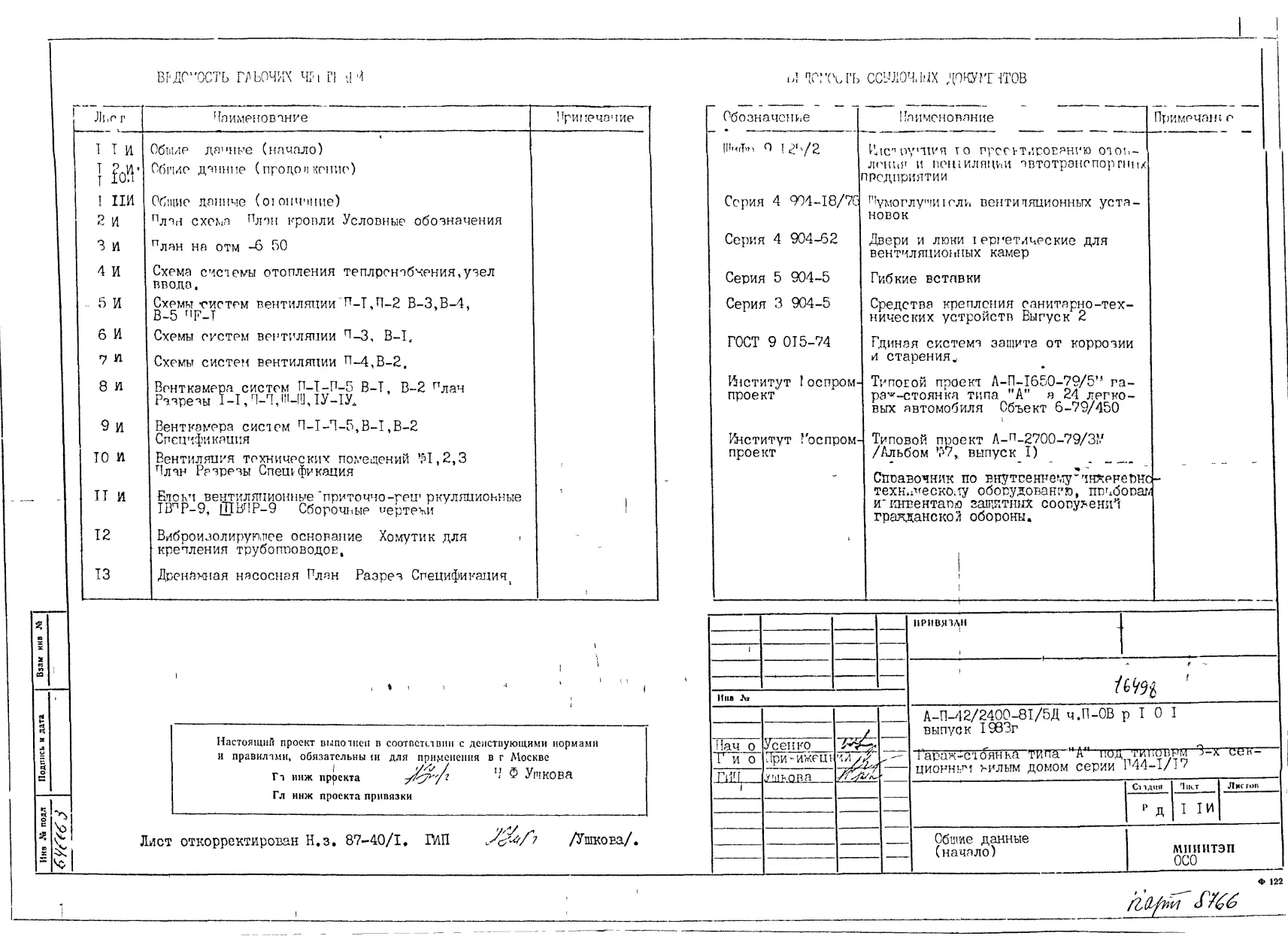 Типовой проект А-II-42/2400-81/5Д Гараж-стоянка типа «А» под 3-х секционным жилым домом П-44/17 с блоком инженерного обеспечения, вынесенным в сторону двора