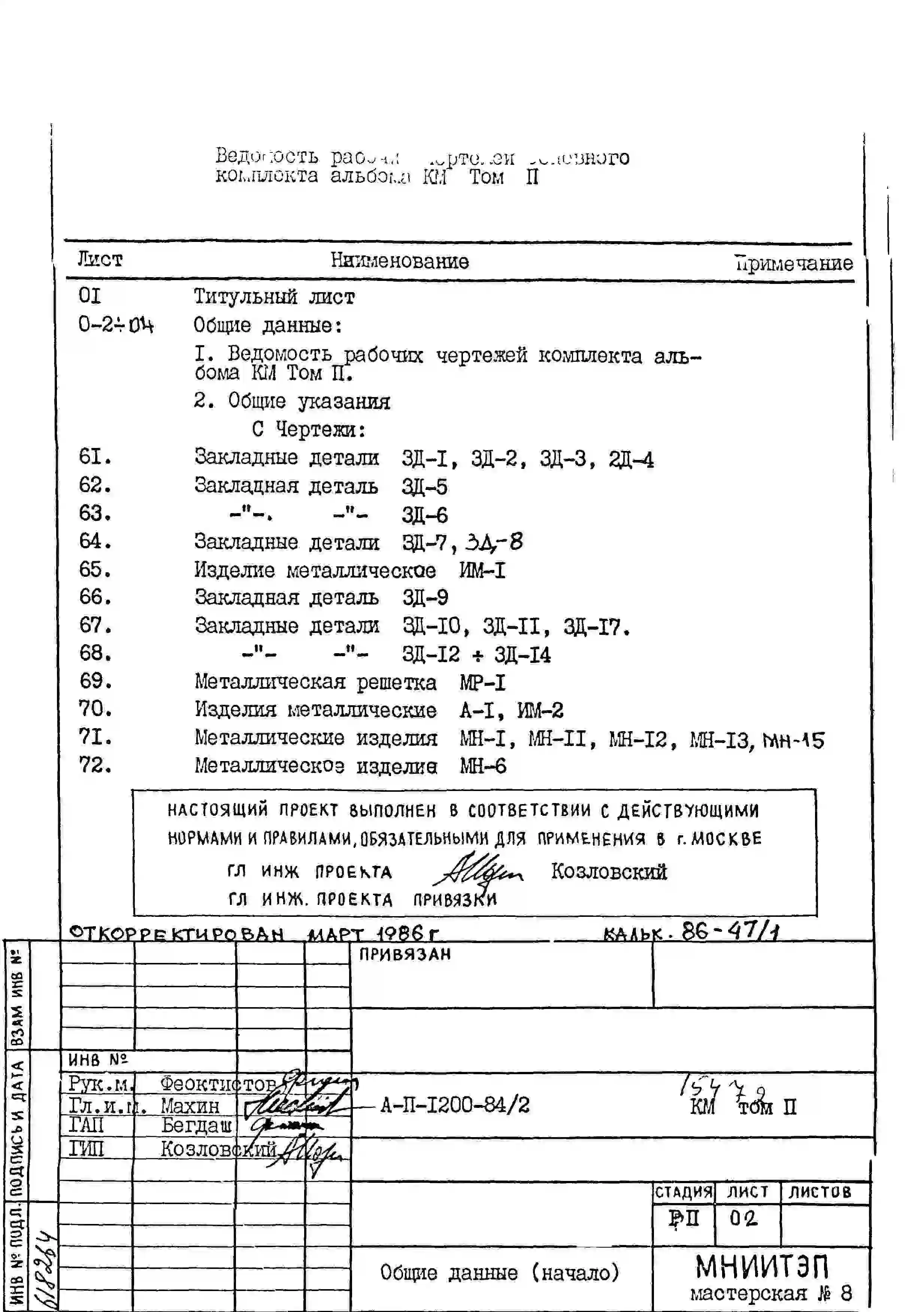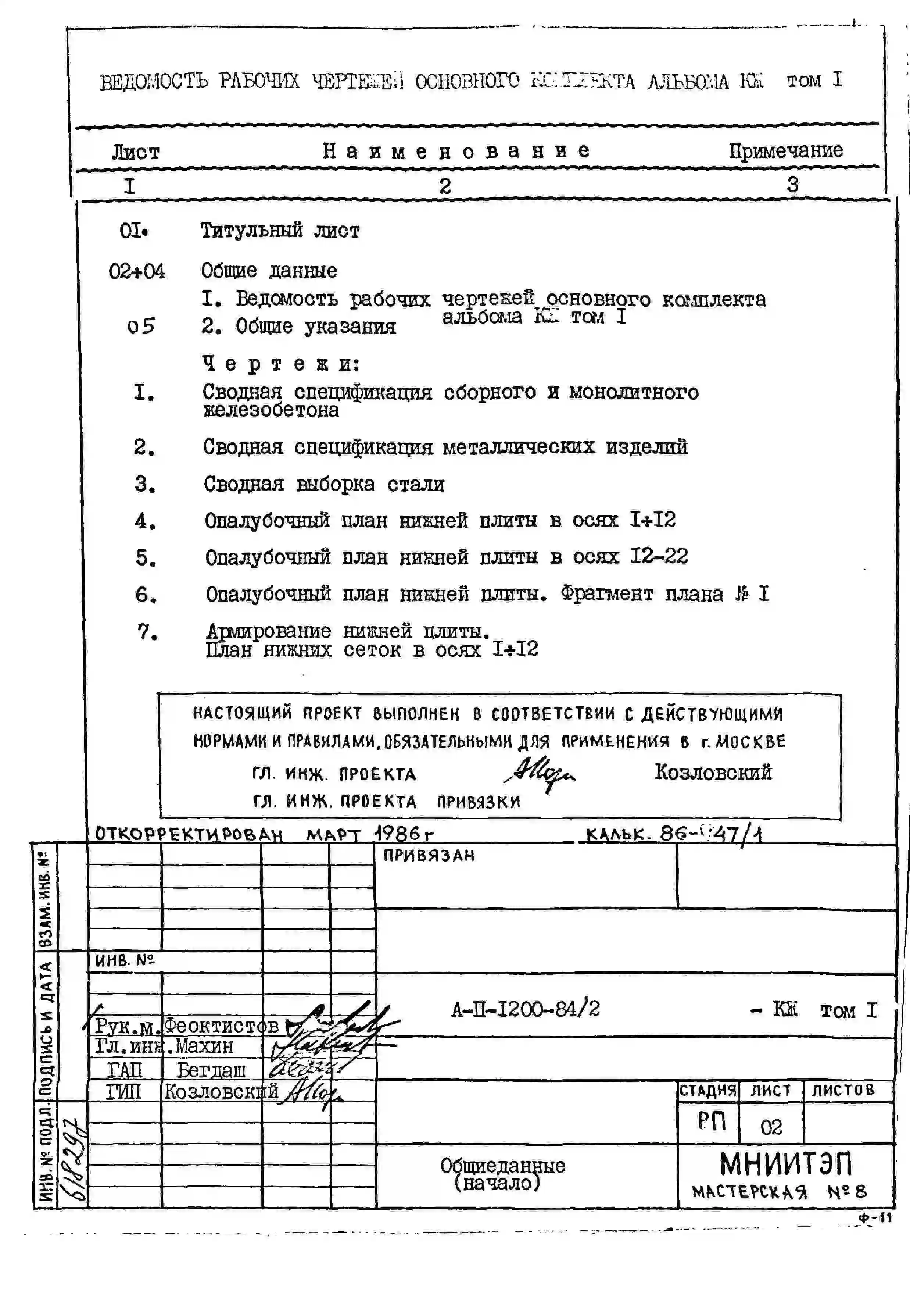 Типовой проект А-II-1200-84/2 Сооружение типа «А» под 3-х секционным жилым домом П44/17 в сборно-монолитных конструкциях