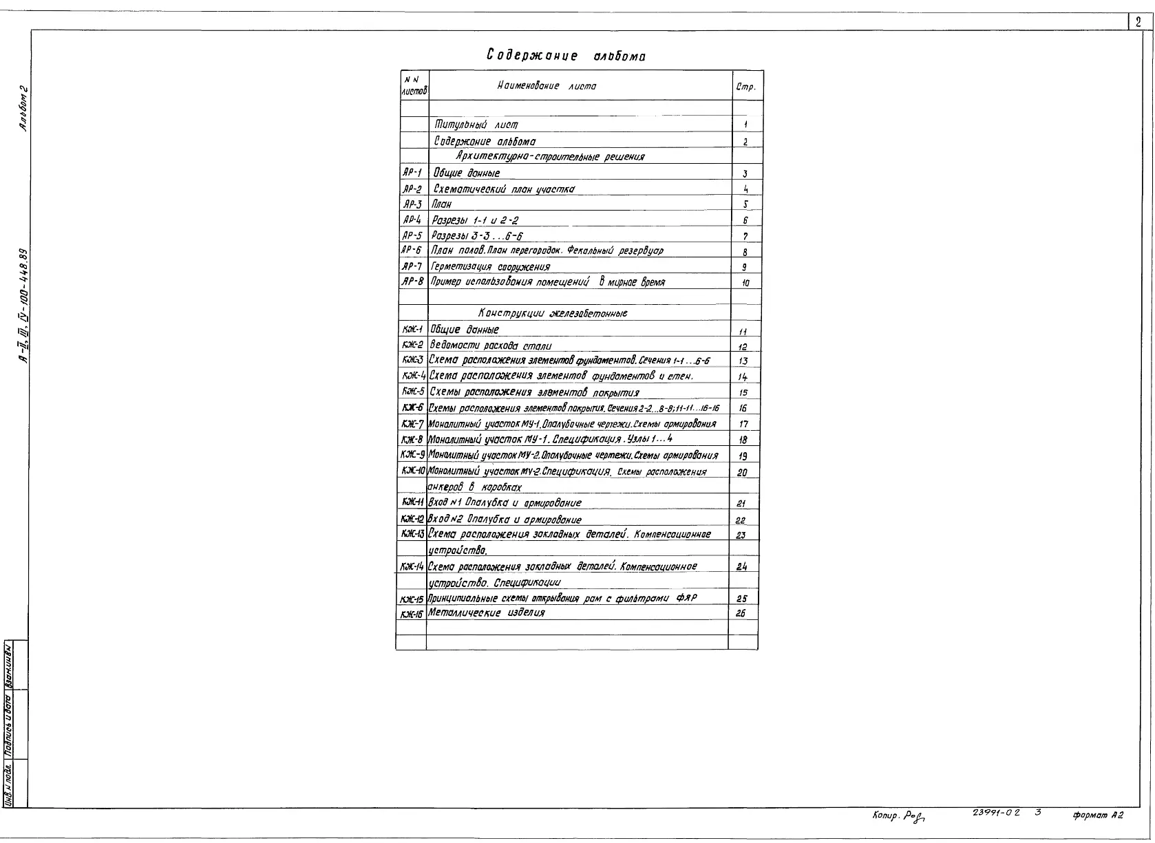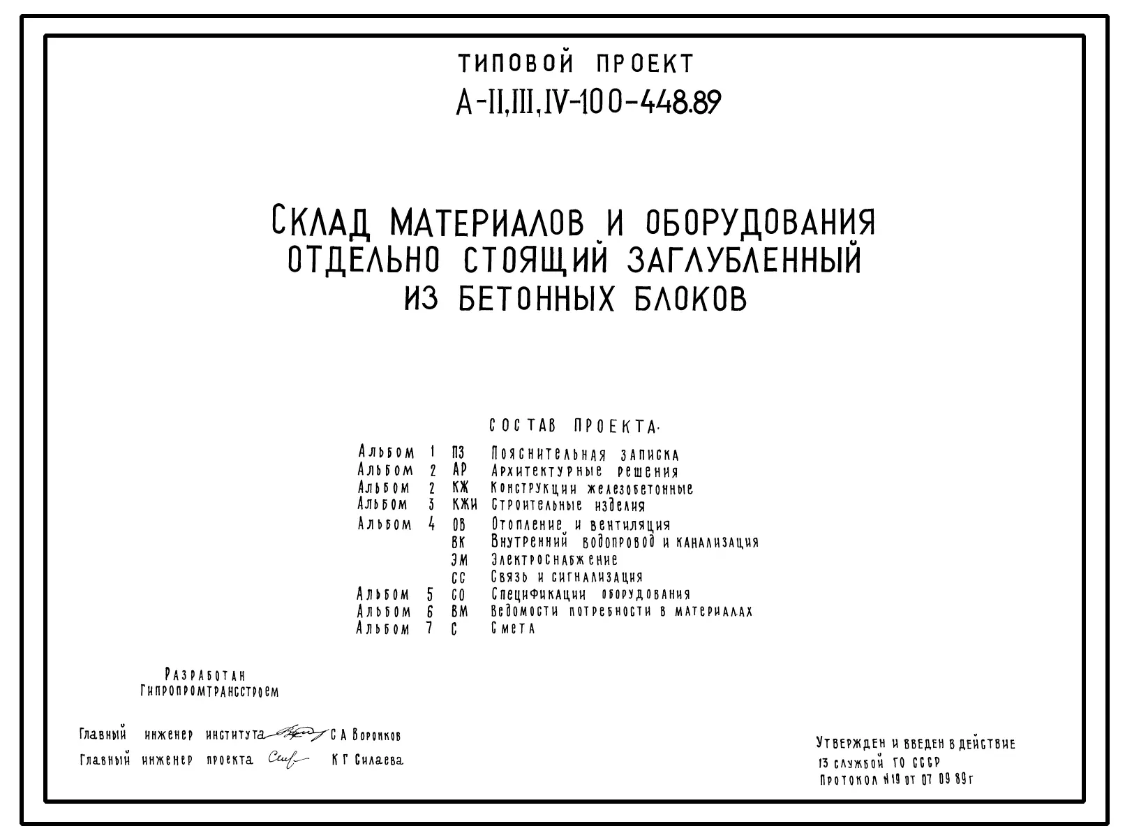 Типовой проект А-II,III,IV-100-448.89 Склад материалов и оборудования отдельно стоящий заглубленный. Стены из бетонных блоков по ГОСТ13579-78, (убежище на 100 человек, размеры убежища 23,6м на 13,9м, режимы вентиляции 1,2).