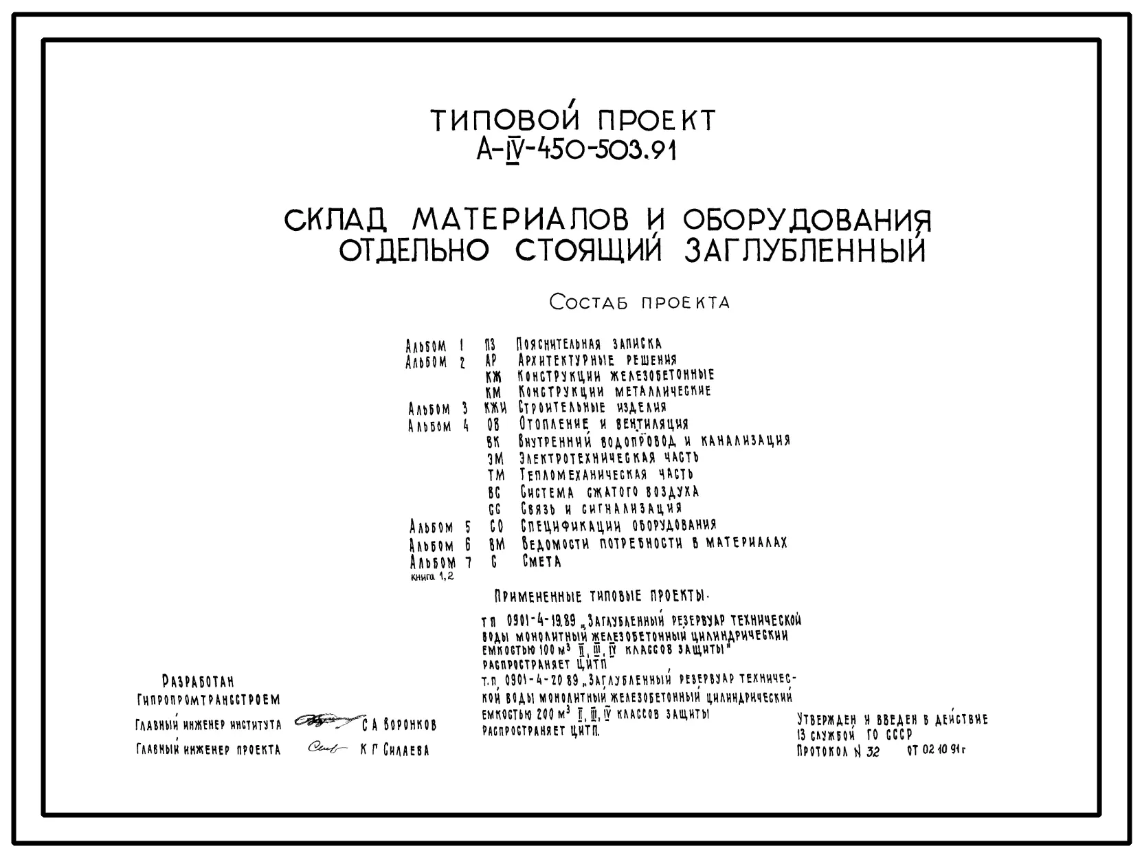 Типовой проект А-IV-450-503.91 Склад материалов и оборудования отдельно стоящий заглубленный. Стены монолитные железобетонные (убежище на 450 человек, размеры убежища 26,6м на 18м, режимы вентиляции 1,2,3)