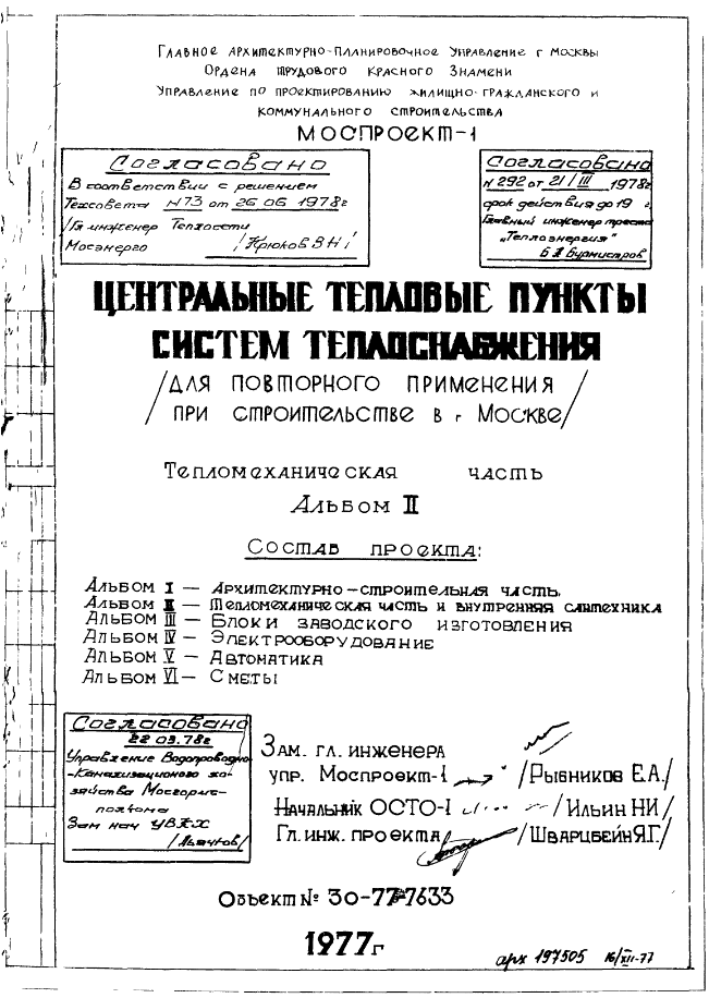 Типовой проект 30-77-7633 Центральный тепловой пункт систем теплоснабжения для строительства в г.Москве