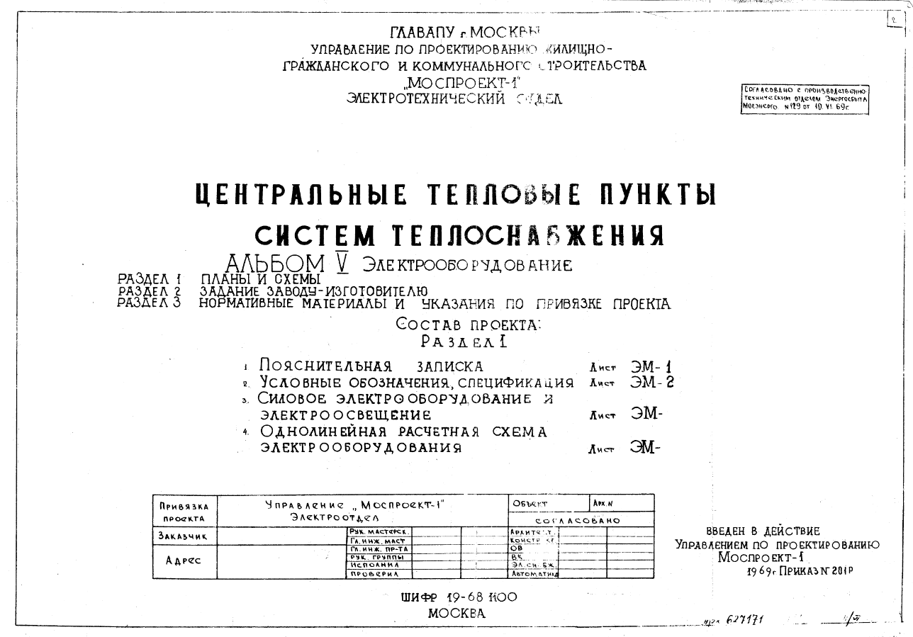 Типовой проект 19-68-1100 Центральные тепловые пункты систем теплоснабжения для строительства в Москве.