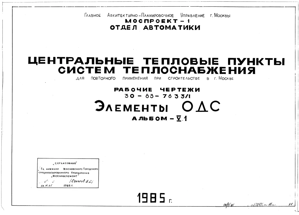 Типовой проект 30-83-7633/1 Центральные тепловые пункты систем теплоснабжения Для строительства в Москве