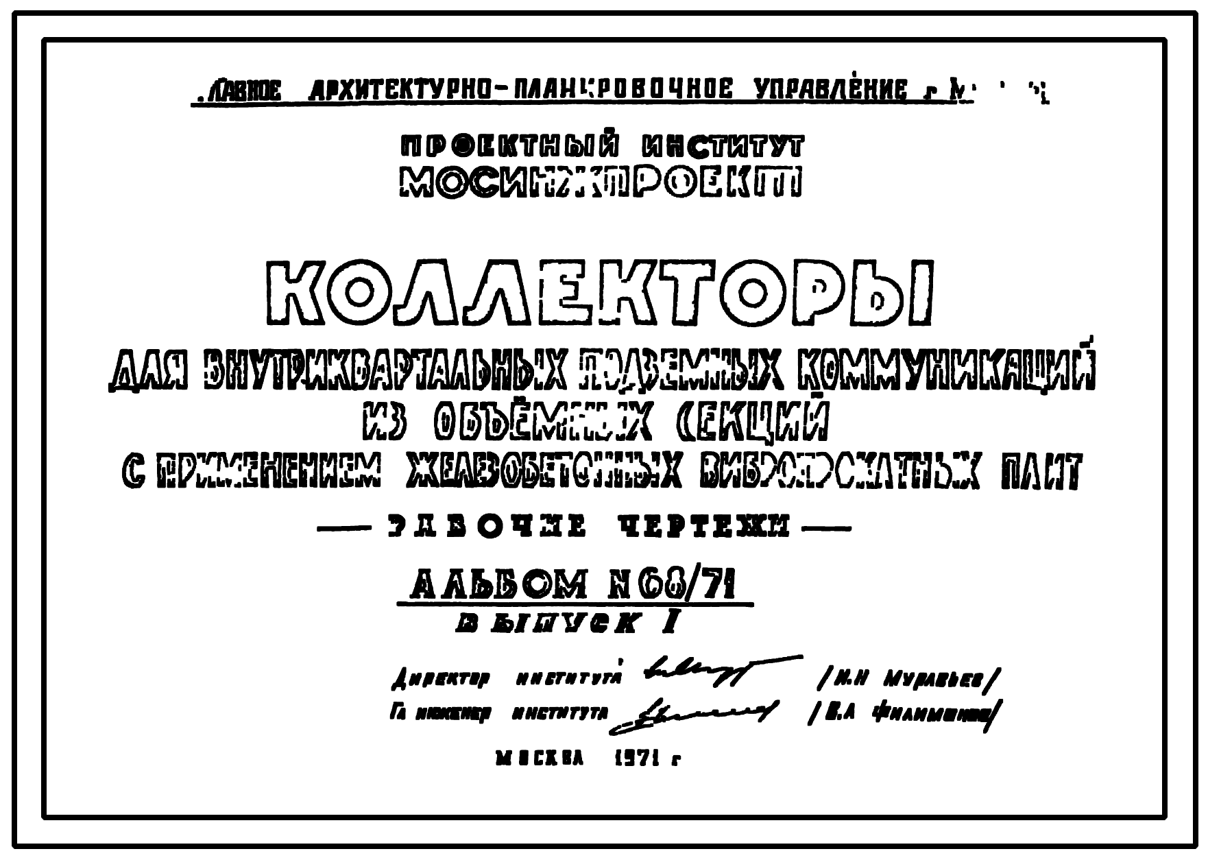 Альбом 68/71 Коллекторы для внутриквартальных подземных коммуникаций из объемных секций с применением железобетонных вибропрокатных плит