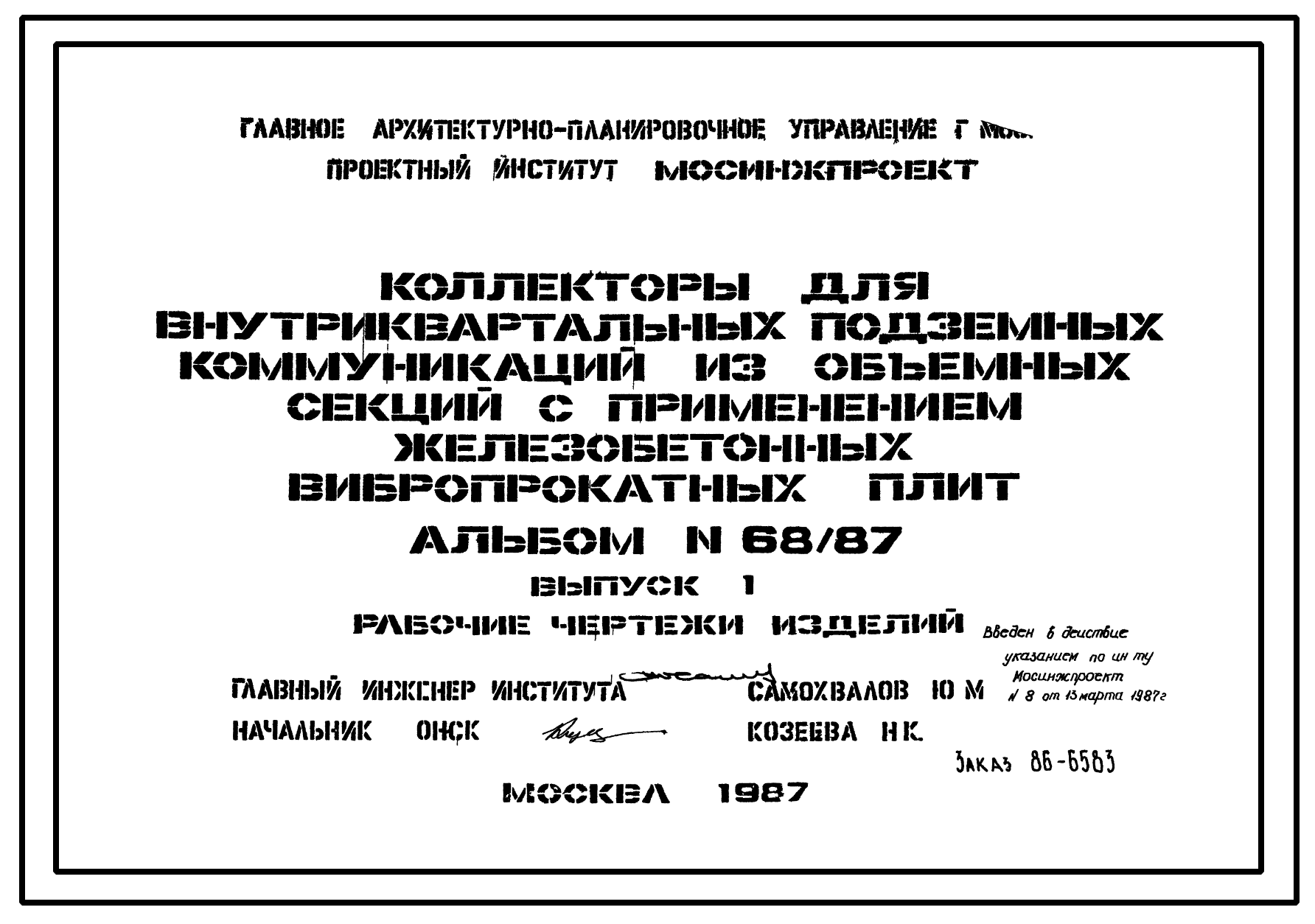 Альбом 68/87 Коллекторы для внутриквартальных подземных коммуникаций из объемных секций с применением железобетонных вибропрокатных плит