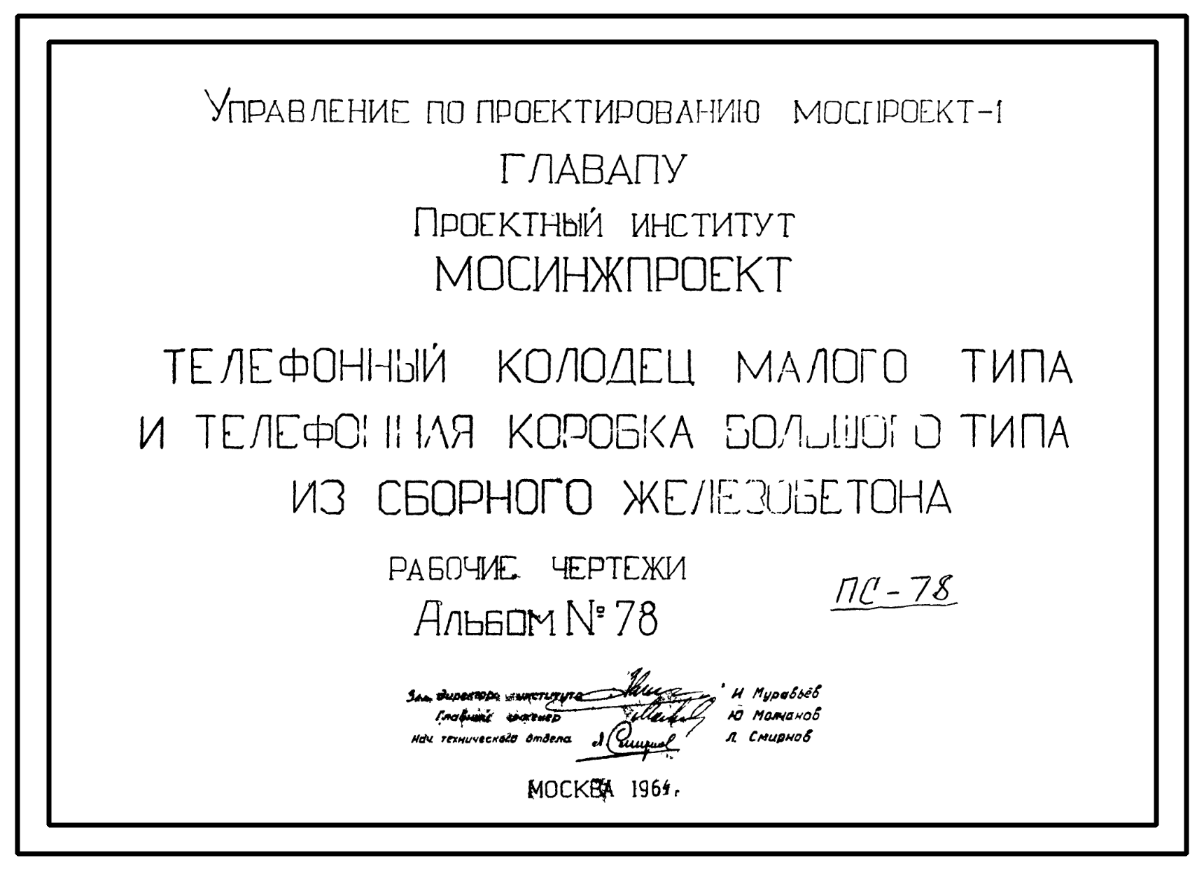 Альбом ПС-78 Телефонный колодец малого типа и телефонная коробка большого типа из сборного железобетона