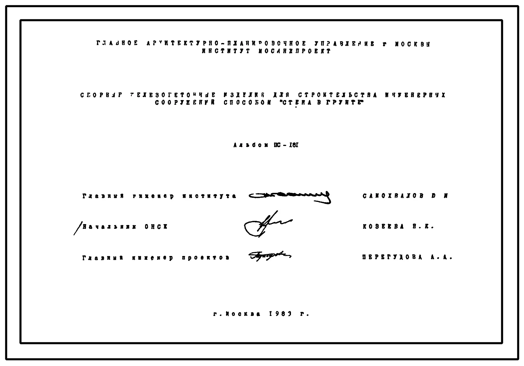 Альбом ПС-181 Сборные железобетонные изделия для строительства инженерных сооружений способом Стена в грунте