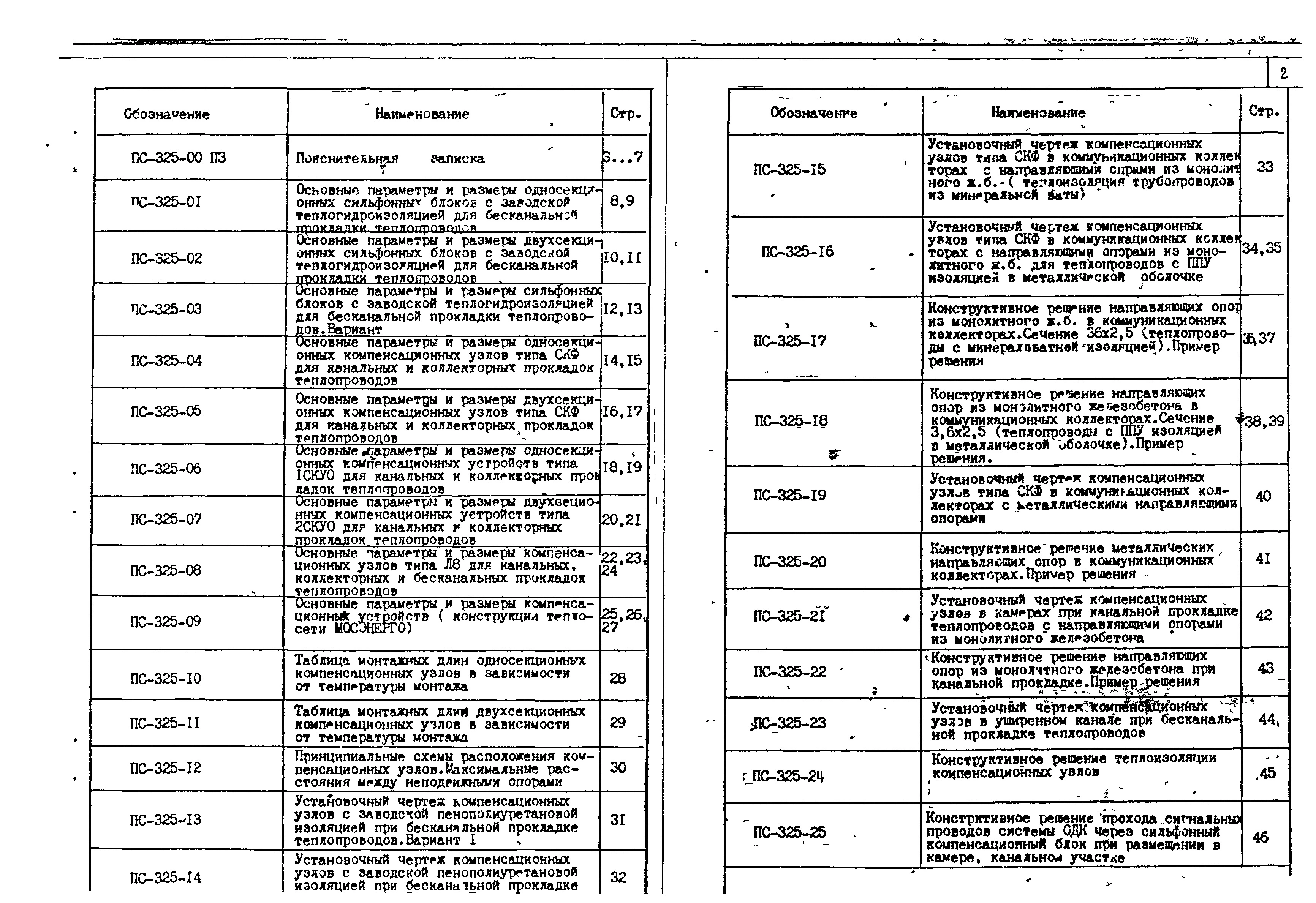 Альбом ПС-325 Установочные чертежи сильфонных компенсационных узлов (устройств) при бесканальной, канальной и коллекторной прокладке тепловых сетей.