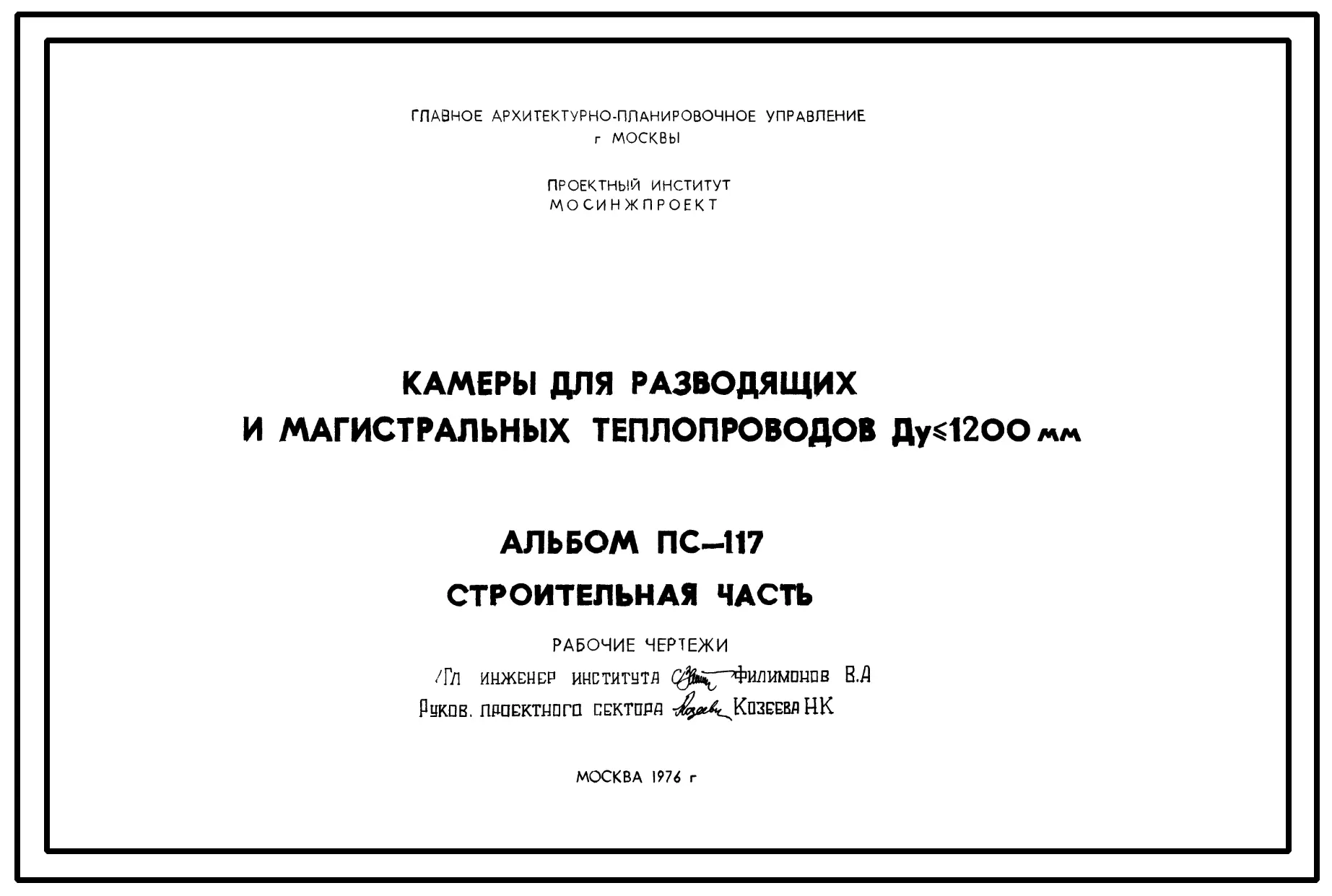 Альбом ПС-117 Камеры для разводящих и магистральных теплопроводов Ду<=1200 мм