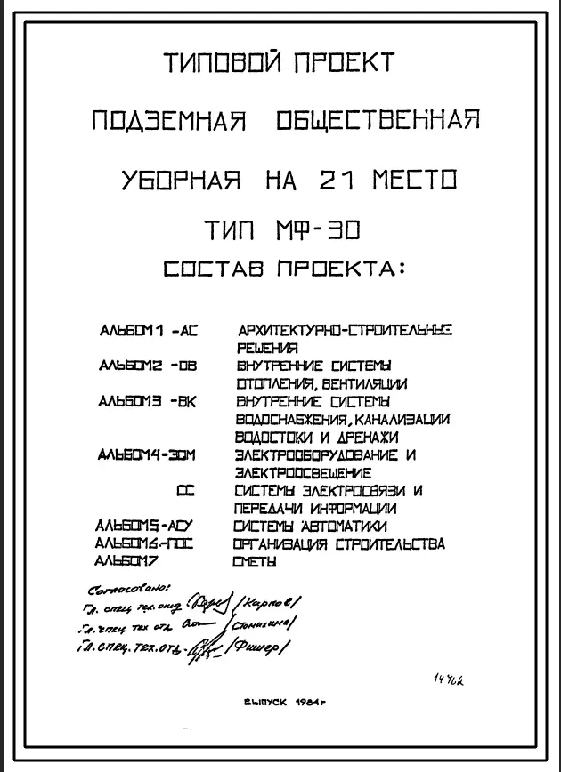 Типовой проект МФ-30 Подземная общественная уборная на 21 кабину