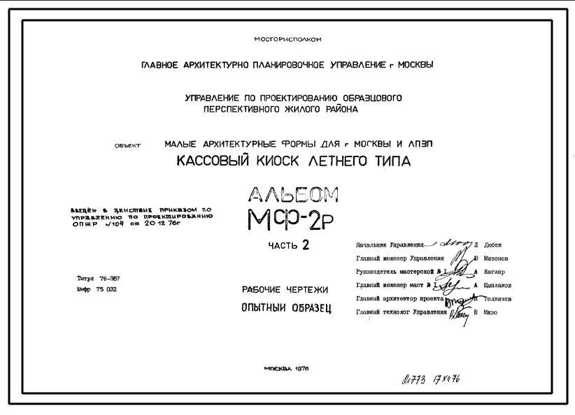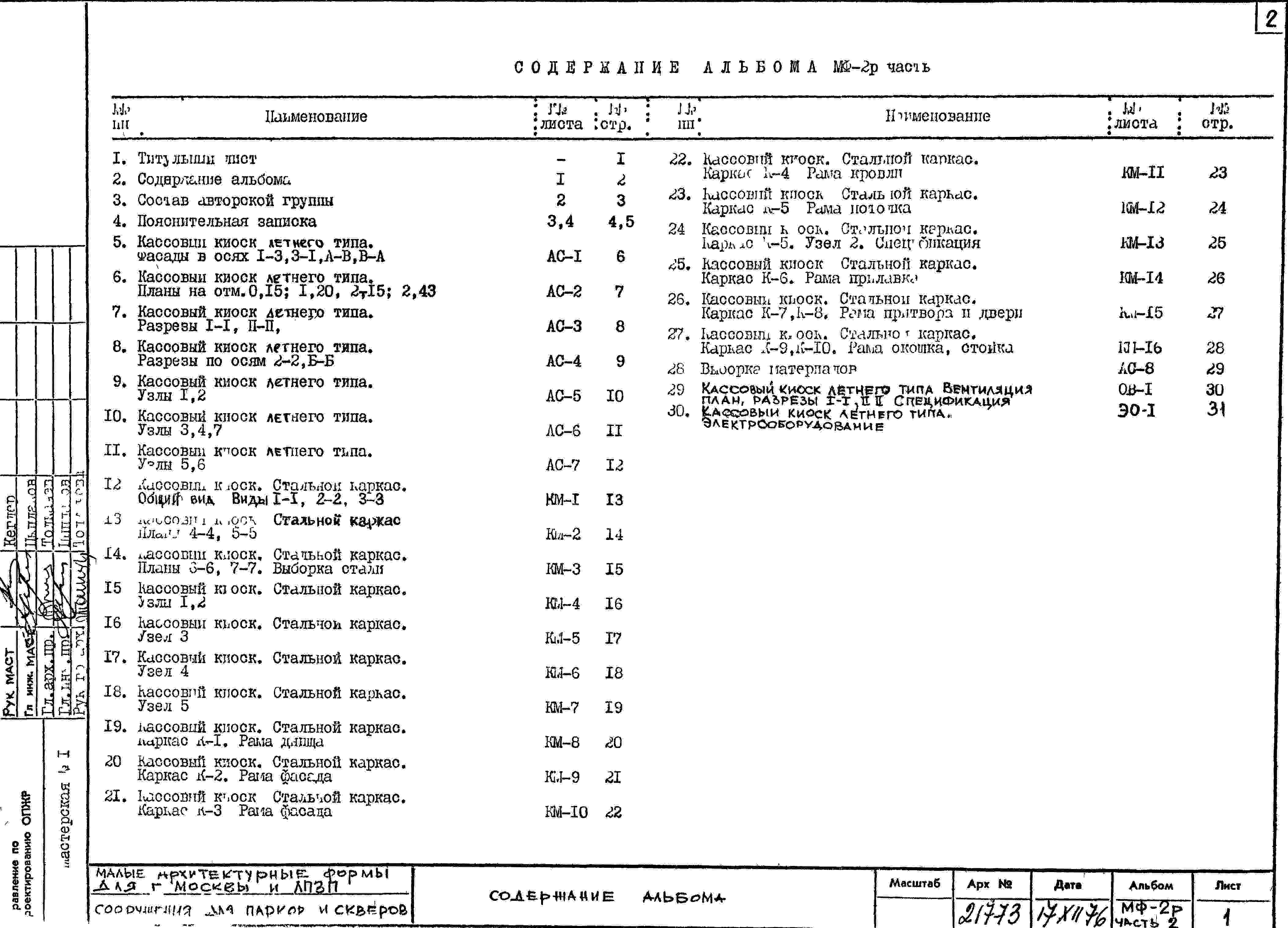 Шифр МФ-2Р Кассовый киоск летнего типа (1976 г.)
