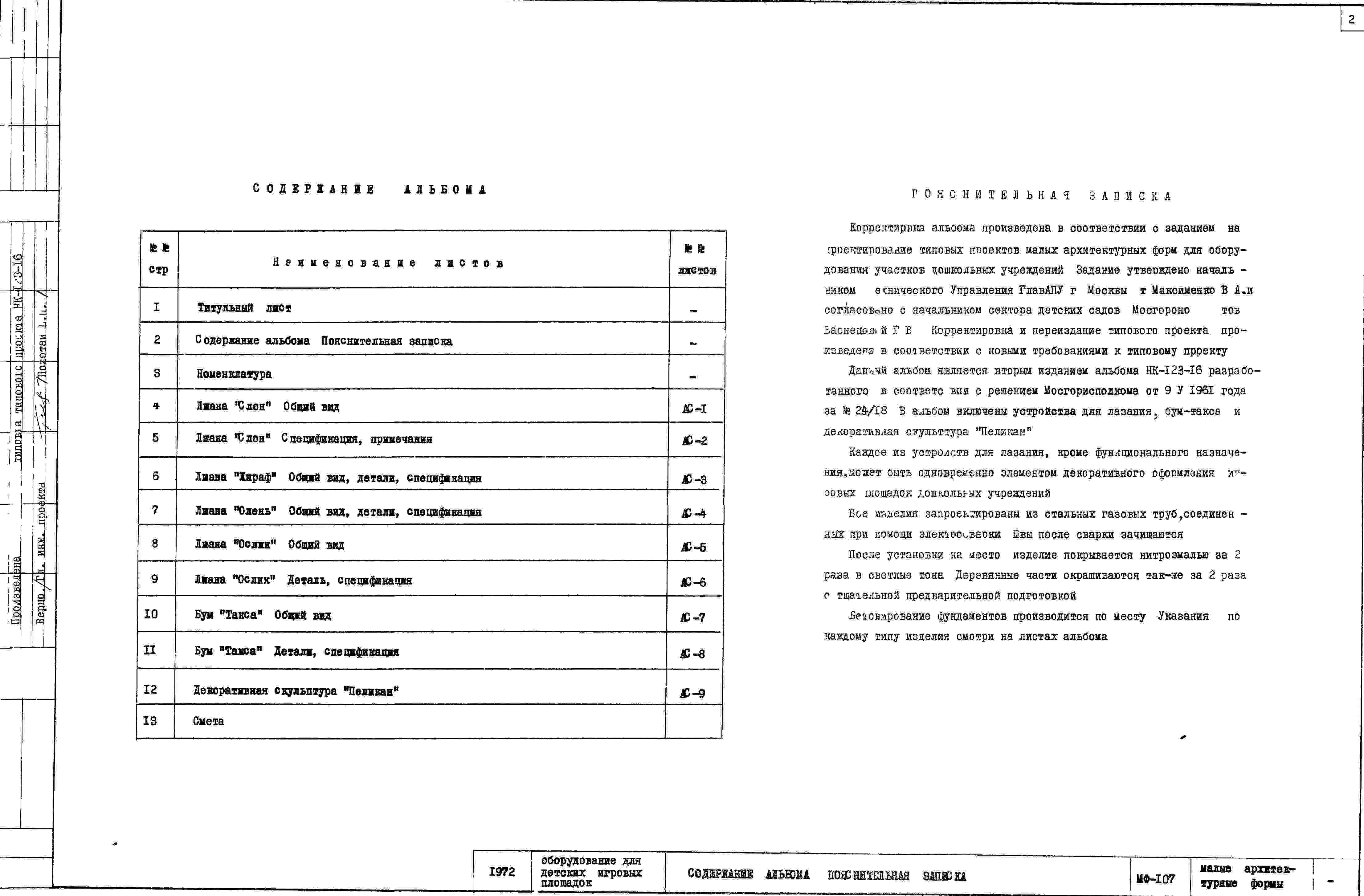 Шифр МФ-107 Оборудование для детских игровых площадок (1972 г.)