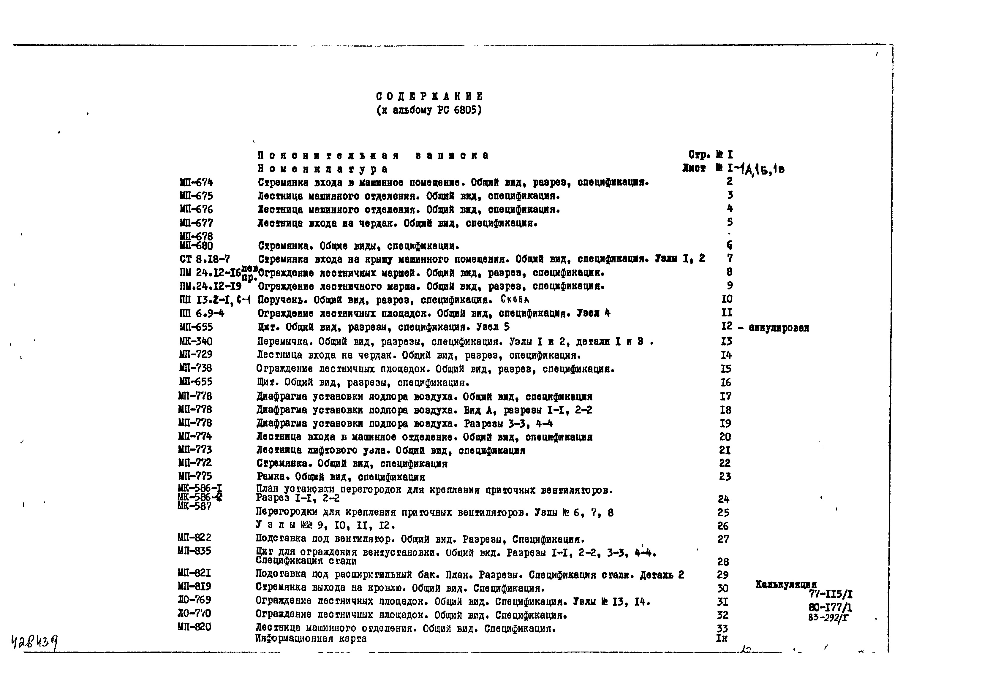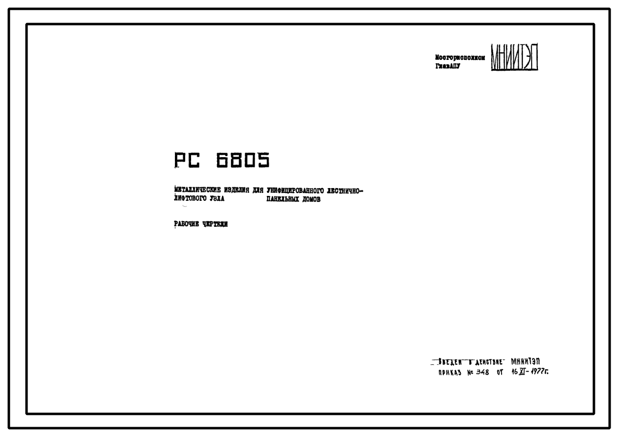 Шифр РС6805 Металлические изделия для унифицированного лестнично-лифтового узла 16 этажных панельных домов (1977 г.)