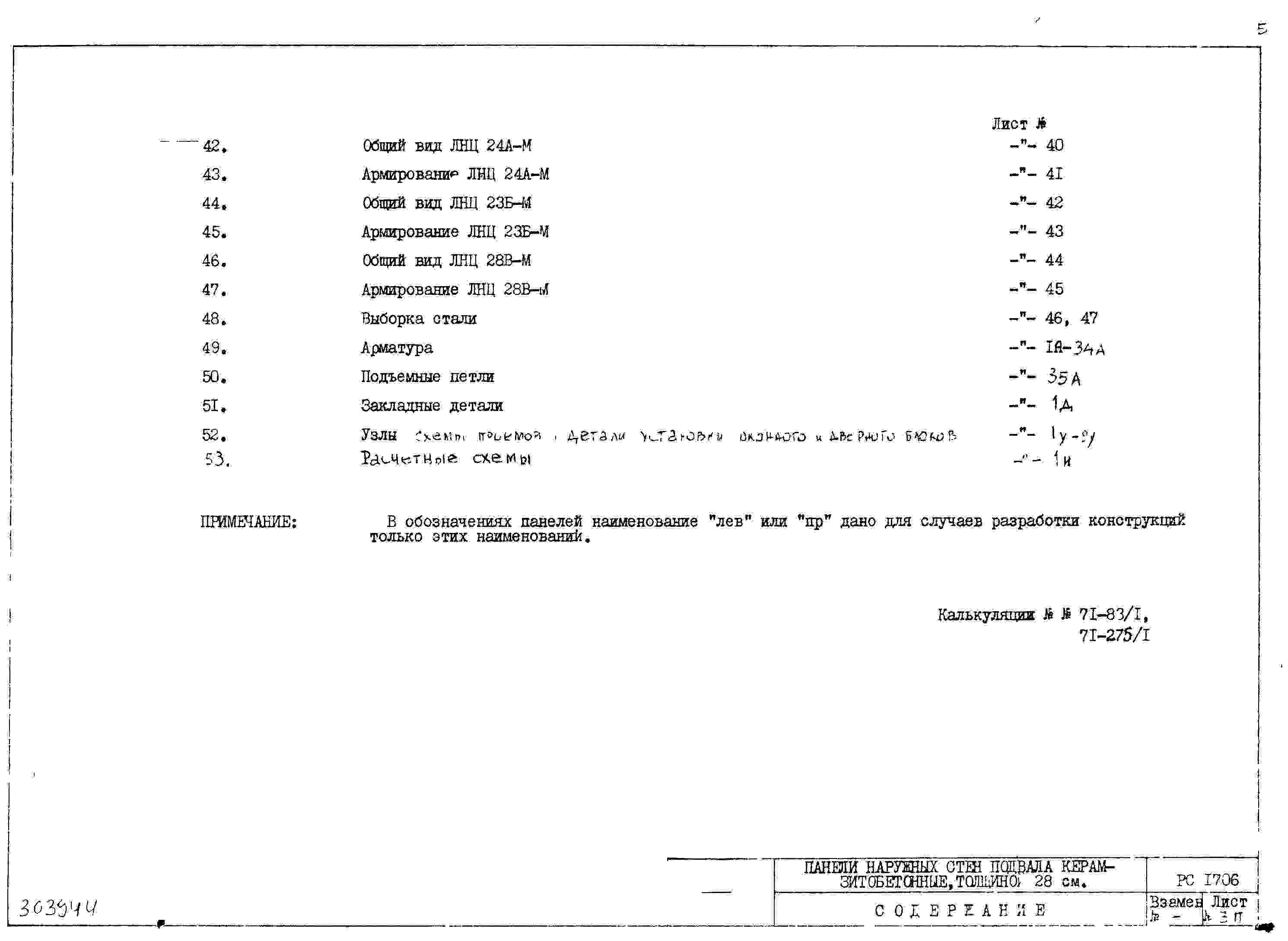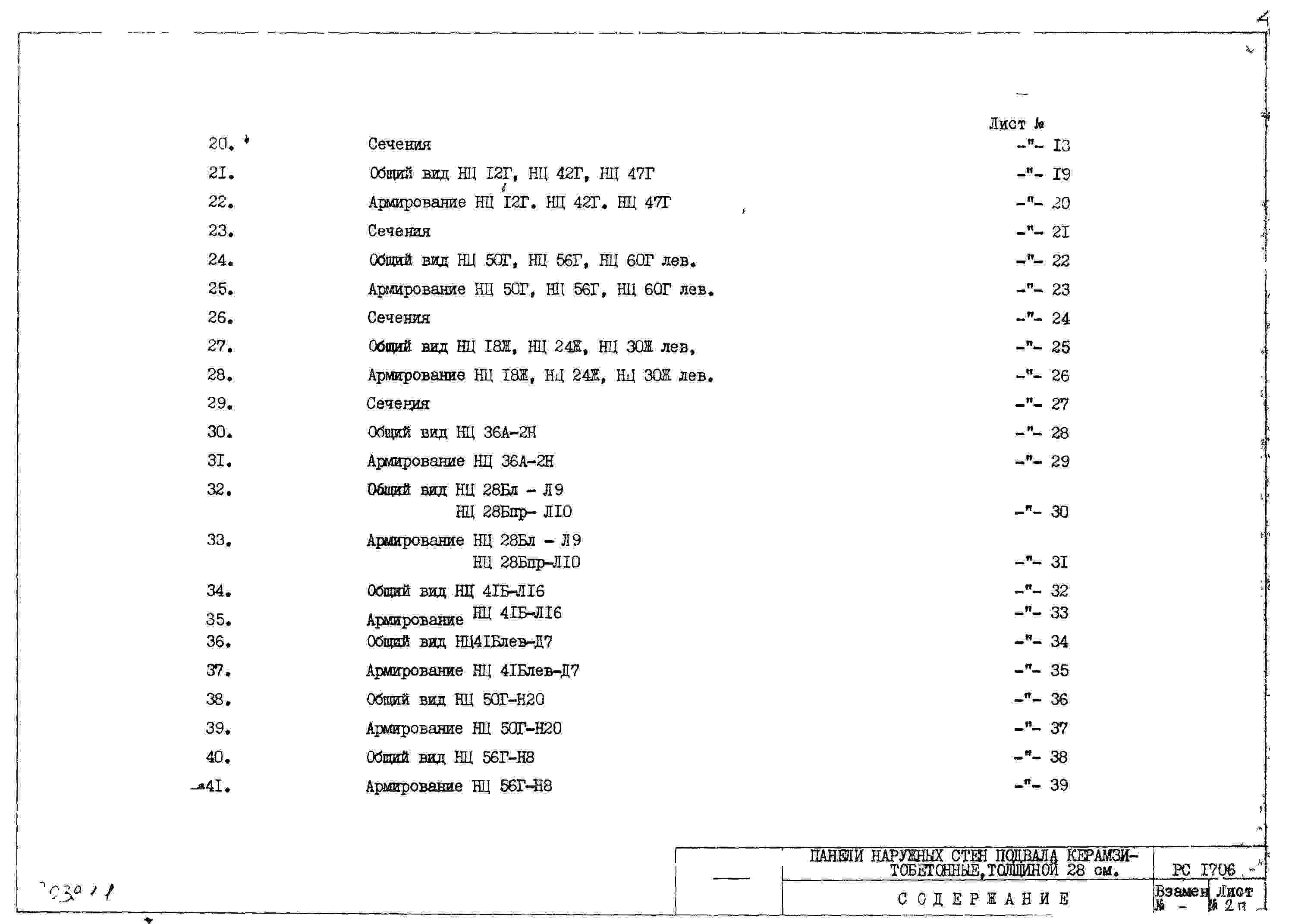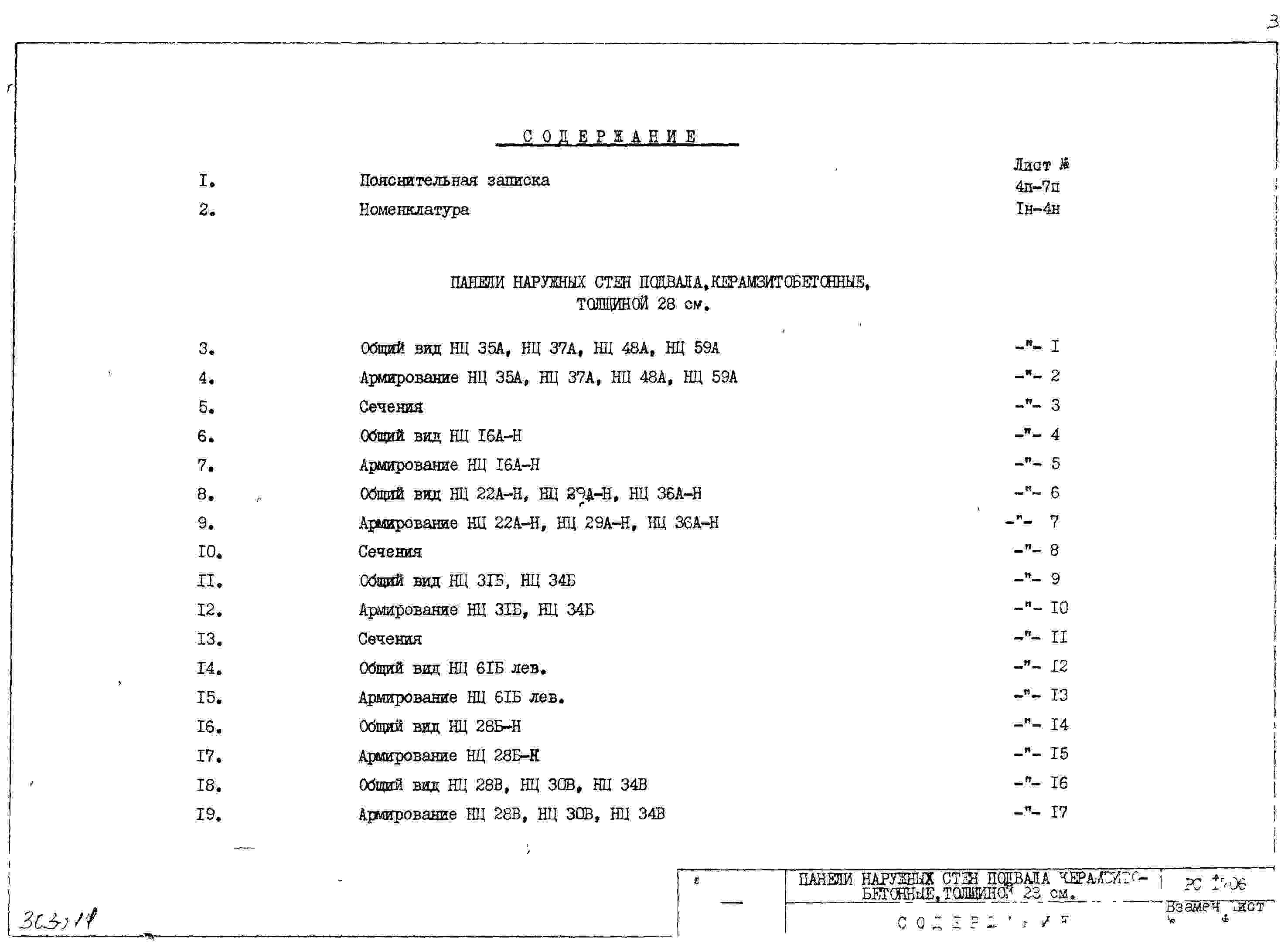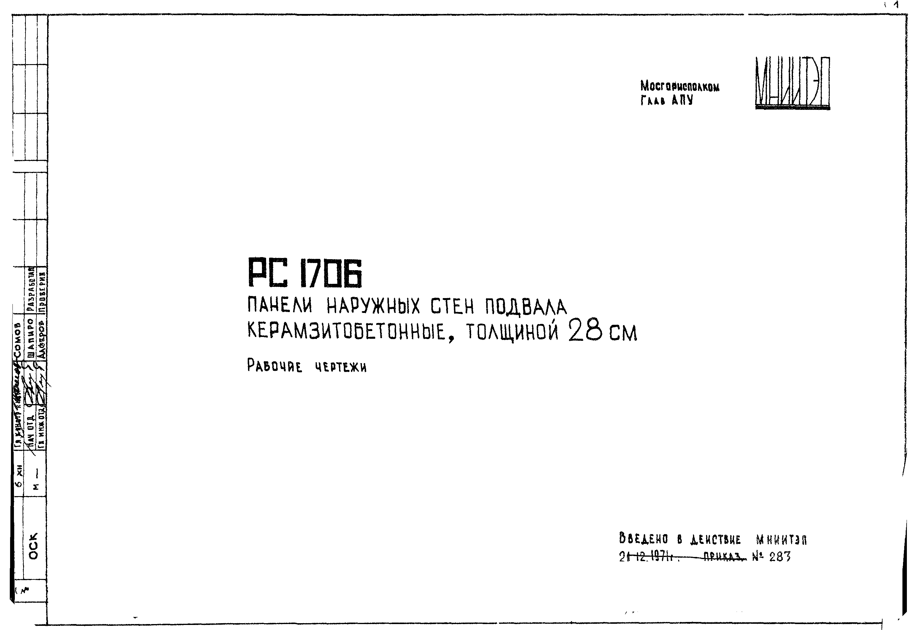 Шифр РС 1706 Панели наружных стен подвала керамзитобетонные, толщиной 28 см (1971 г.)