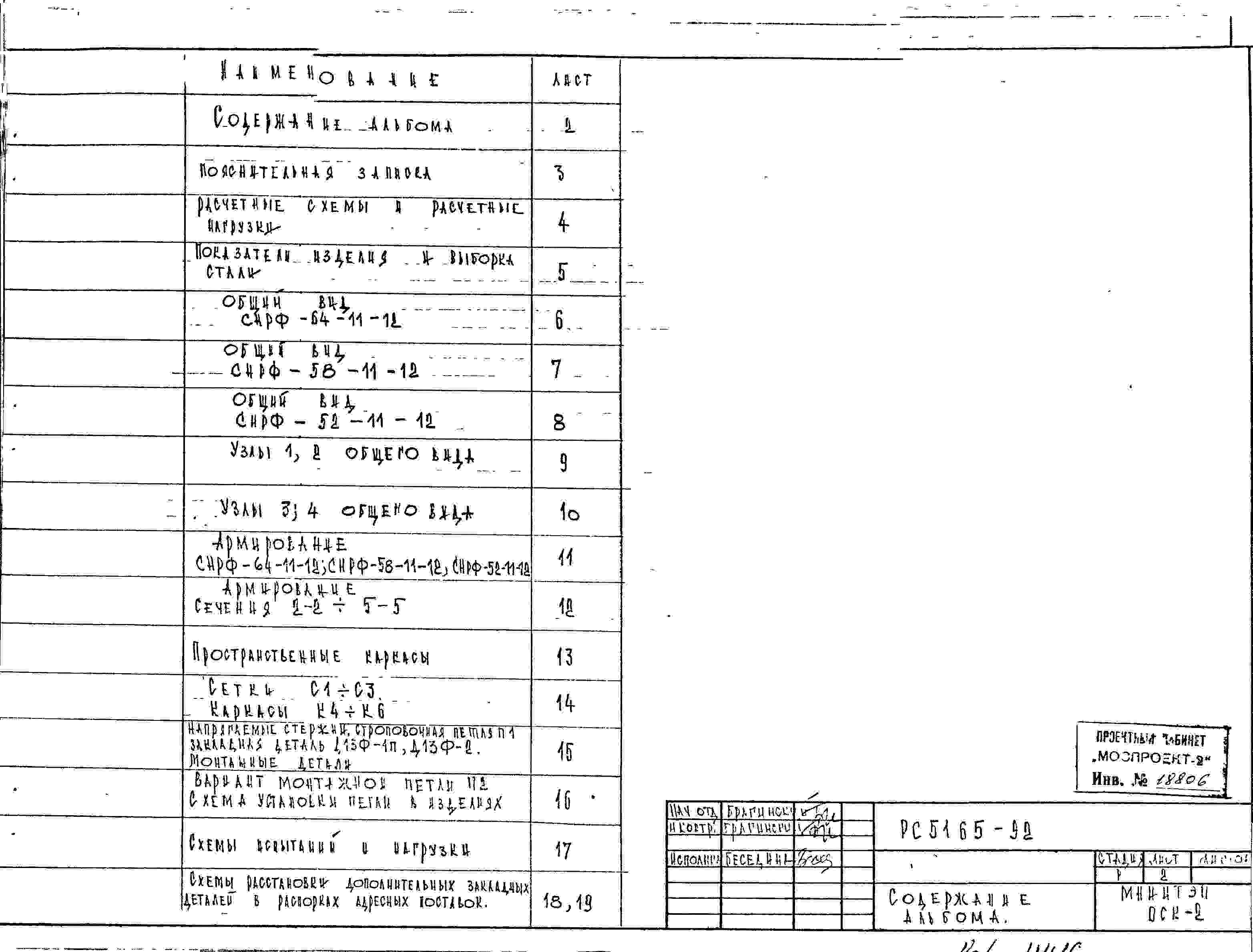 Шифр РС5165-92 Панели перекрытий - распорок фасадных на пролет 5,4; 6,0; 6,6 м по каталогу ТК1-2 (1992 г.)