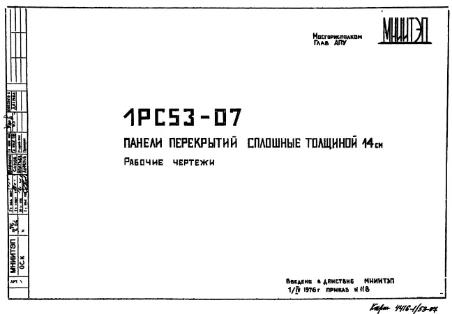 Шифр 1РС 53-07 Панели перекрытий сплошные толщиной 14 см (1976 г.)