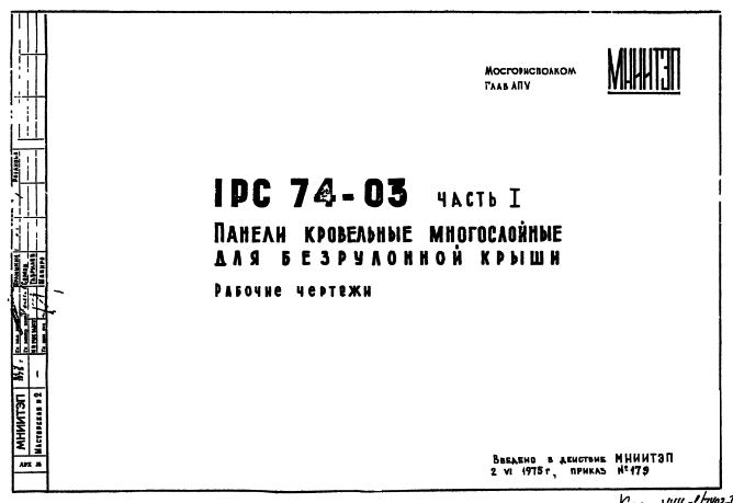 Шифр 1РС 74-03 Панели кровельные многослойные для безрулонной крыши (1975 г.)