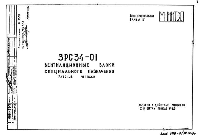Шифр 3РС 34-01 Вентиляционные блоки специального назначения (1974 г.)
