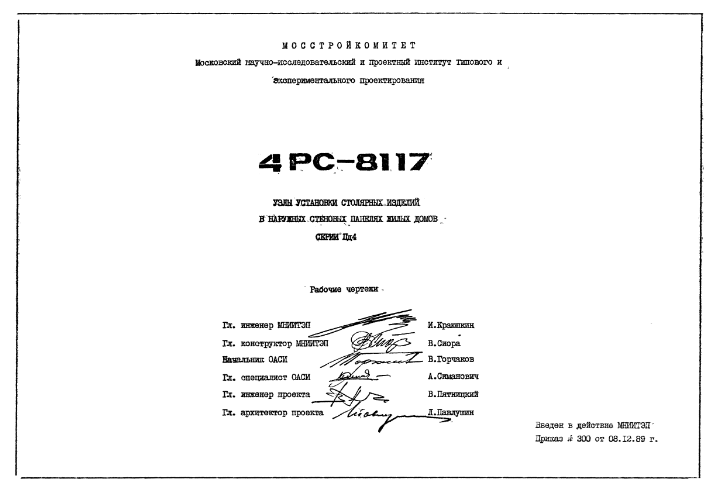 Шифр 4РС 8117 Узлы установки столярных изделий в наружных стеновых панелях жилых домов серии Пд4 (1989 г.)