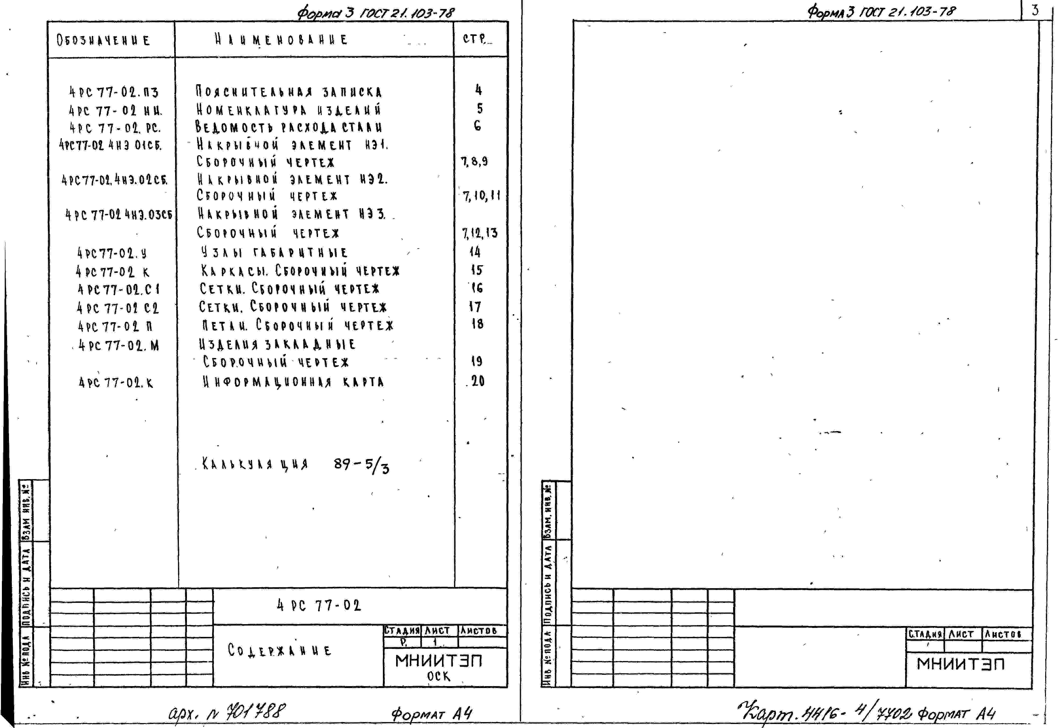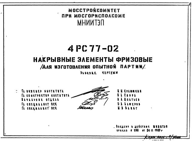 Шифр 4РС 77-02 Накрывные элементы фризовые (для изготовления опытной партии) (1989 г.)