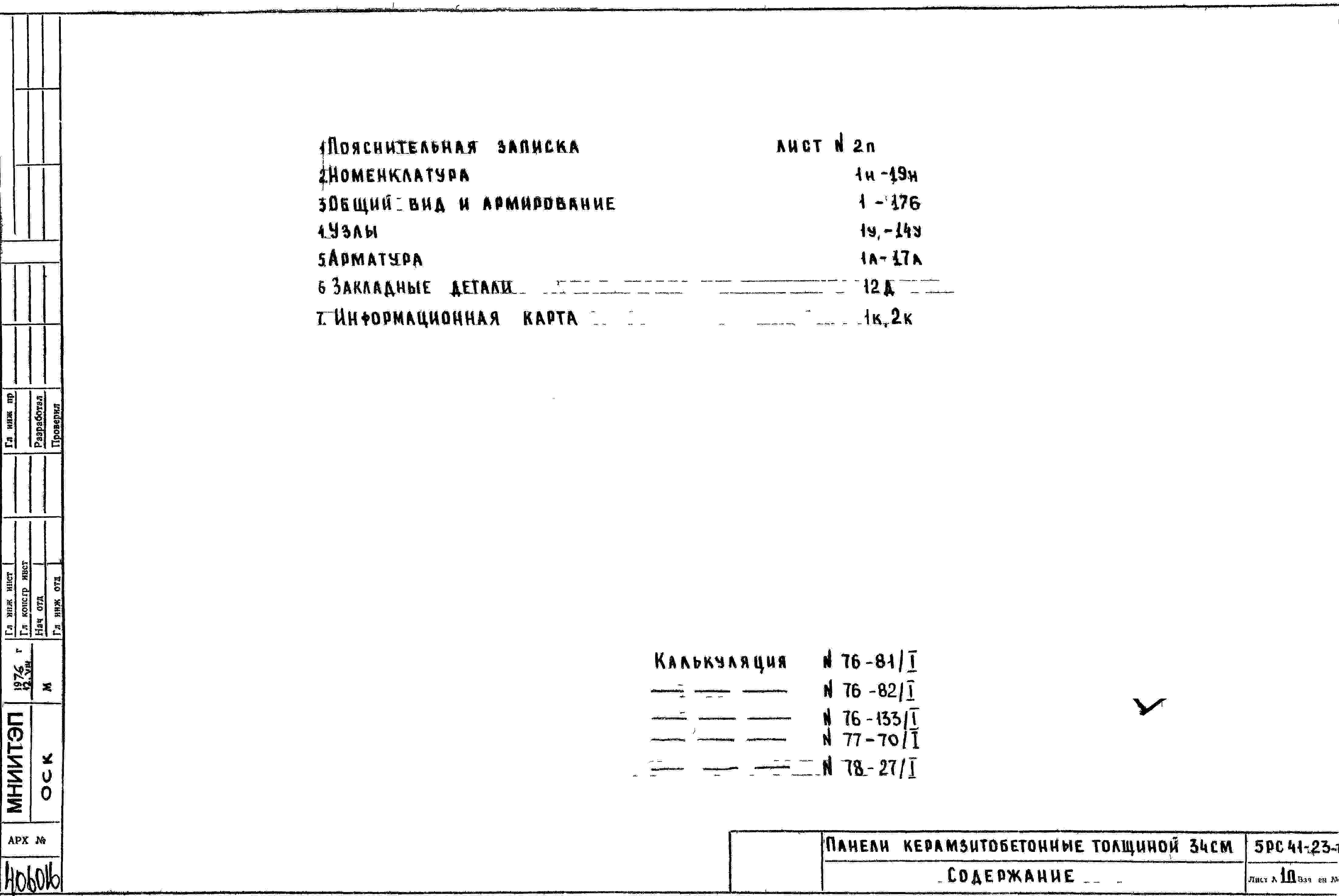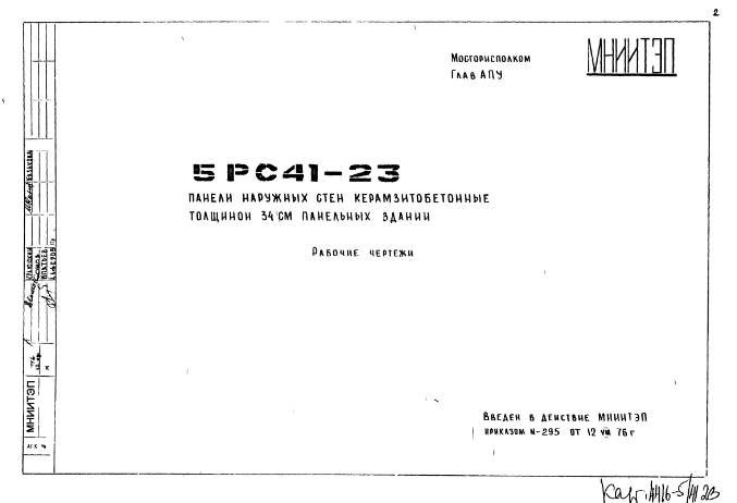 Шифр 5РС 41-23 Панели наружных стен керамзитобетонные толщиной 34 см панельных зданий (1976 г.)