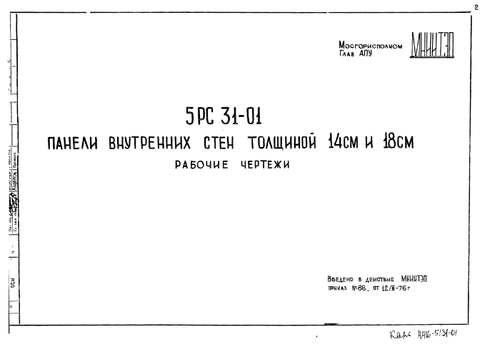Шифр 5РС 31-01 Панели внутренних стен толщиной 14 см и 18 см (1976 г.)