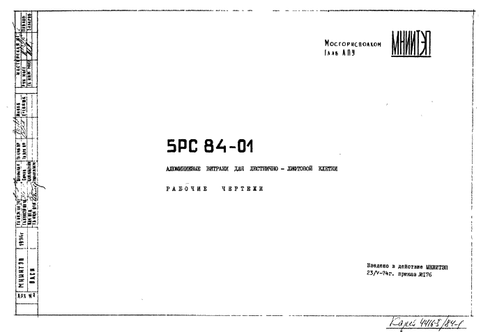 Шифр 5РС 84-01 Алюминиевые витражи для лестнично-лифтовой клетки (1974 г.)