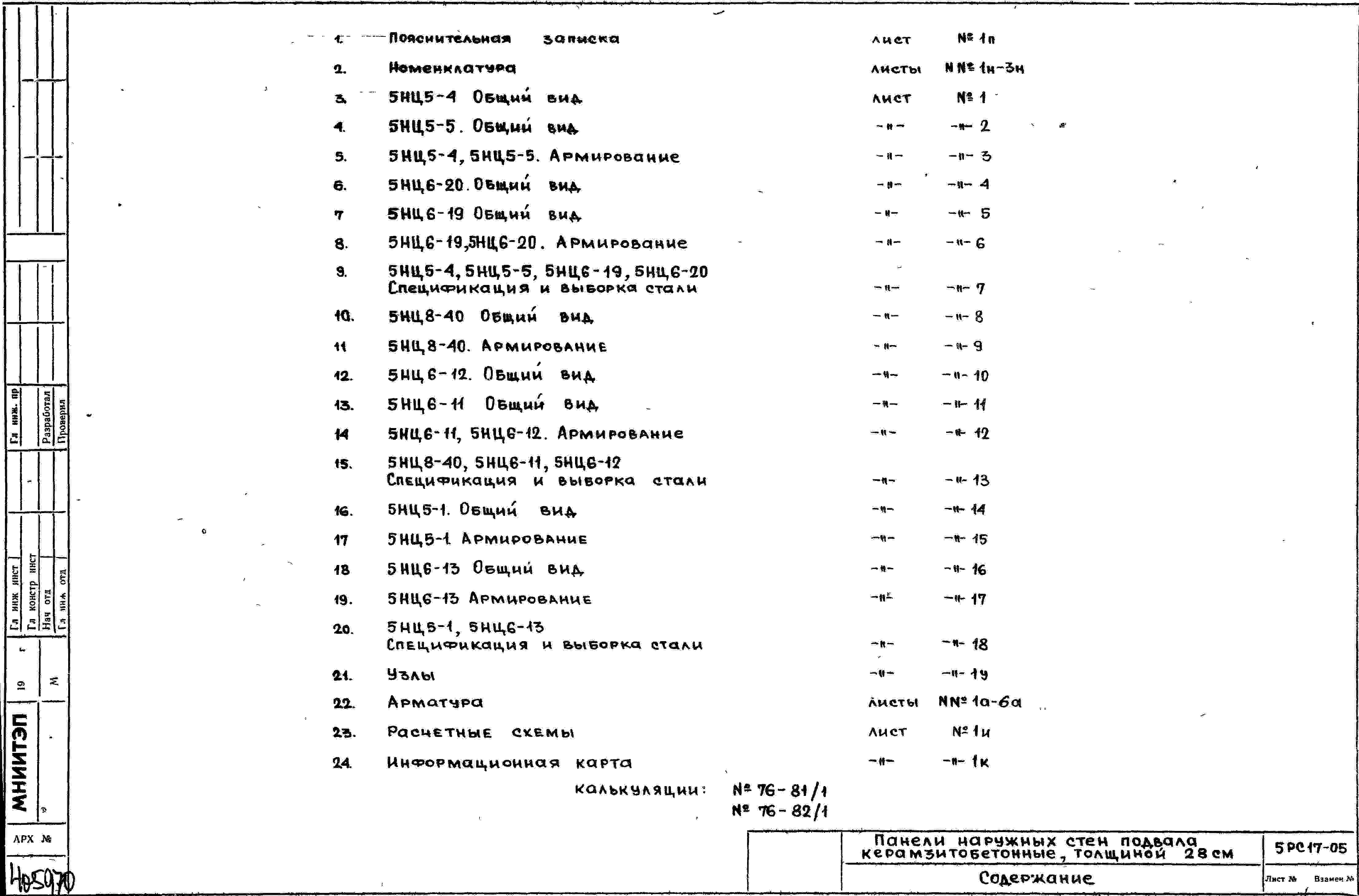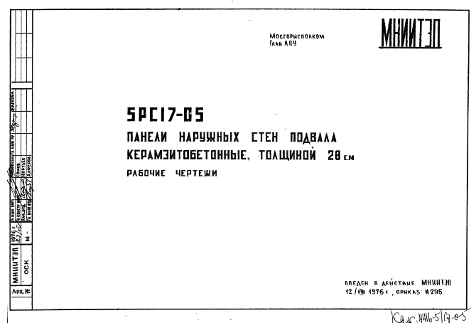 Шифр 5РС 17-05 Панели наружных стен подвала керамзитобетонные, толщиной 28 см (1976 г.)