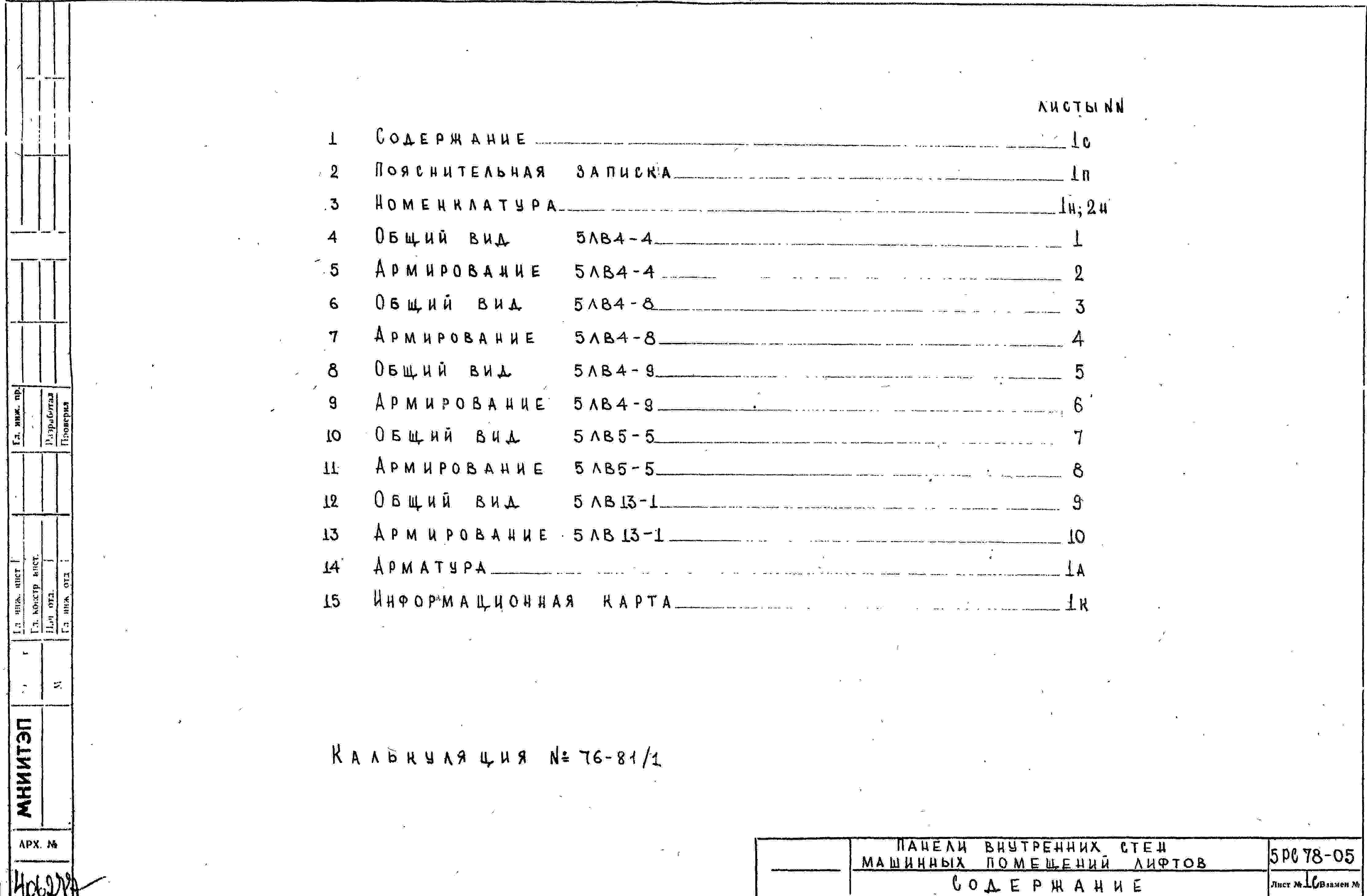 Шифр 5РС 78-05 Панели внутренних стен машинных помещений лифтов (1976 г.)