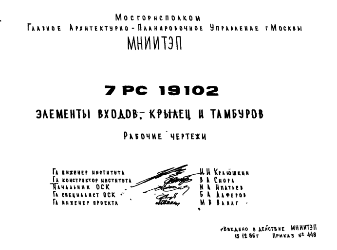 Шифр 7РС 19102 Элементы входов, крылец и тамбуров (1986 г.)