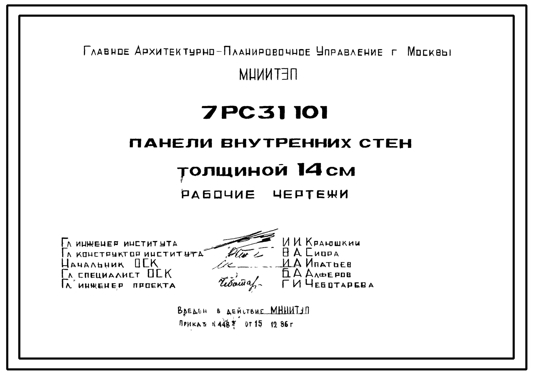 Шифр 7РС 31101 Панели внутренних стен толщиной 14 см (1986 г.)