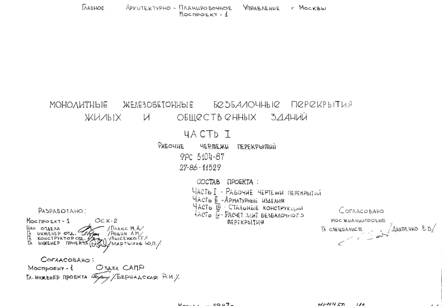 Шифр 9РС 5104-87 Монолитные железобетонные безбалочные перекрытия жилых и общественных зданий (1987 г.)