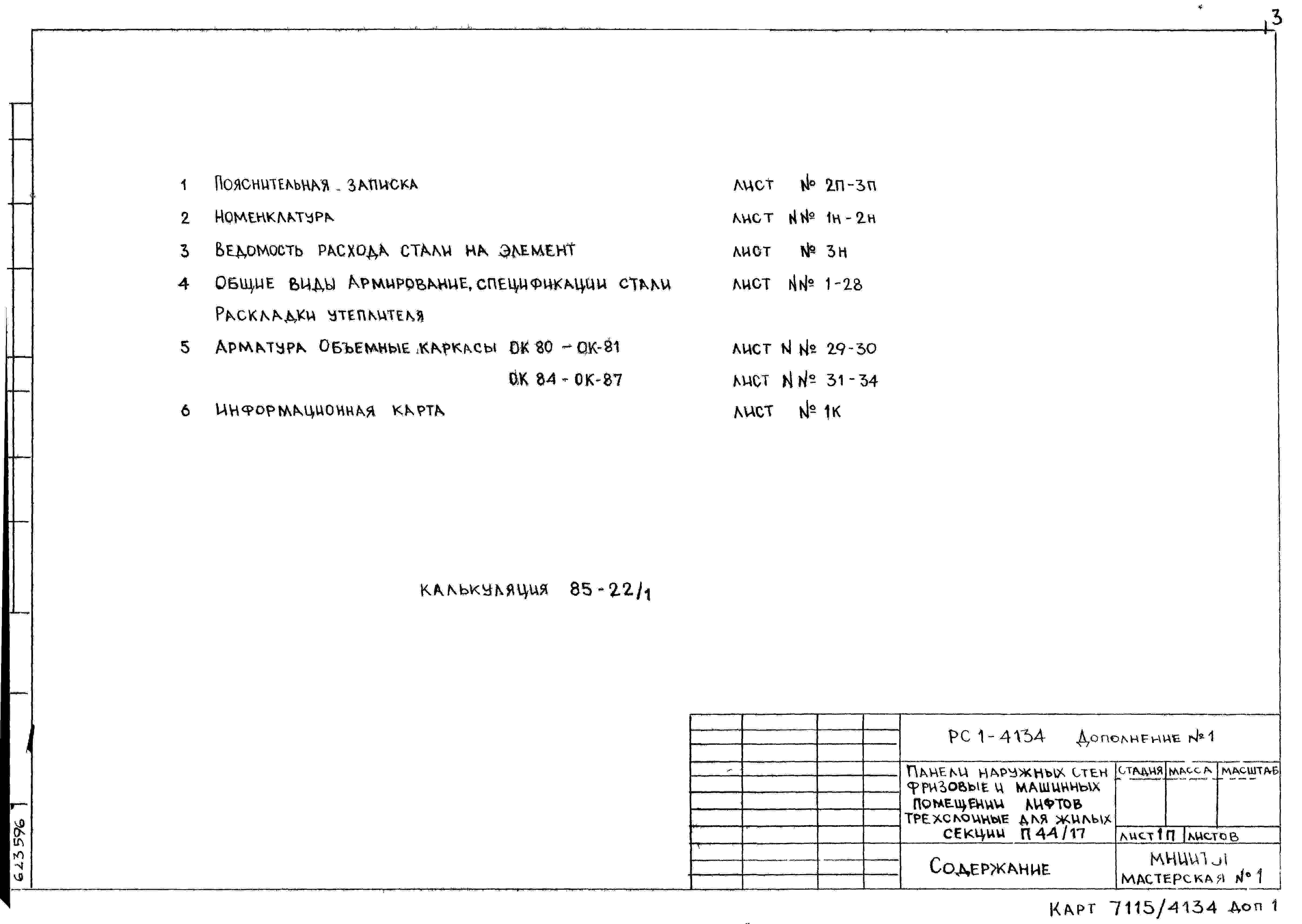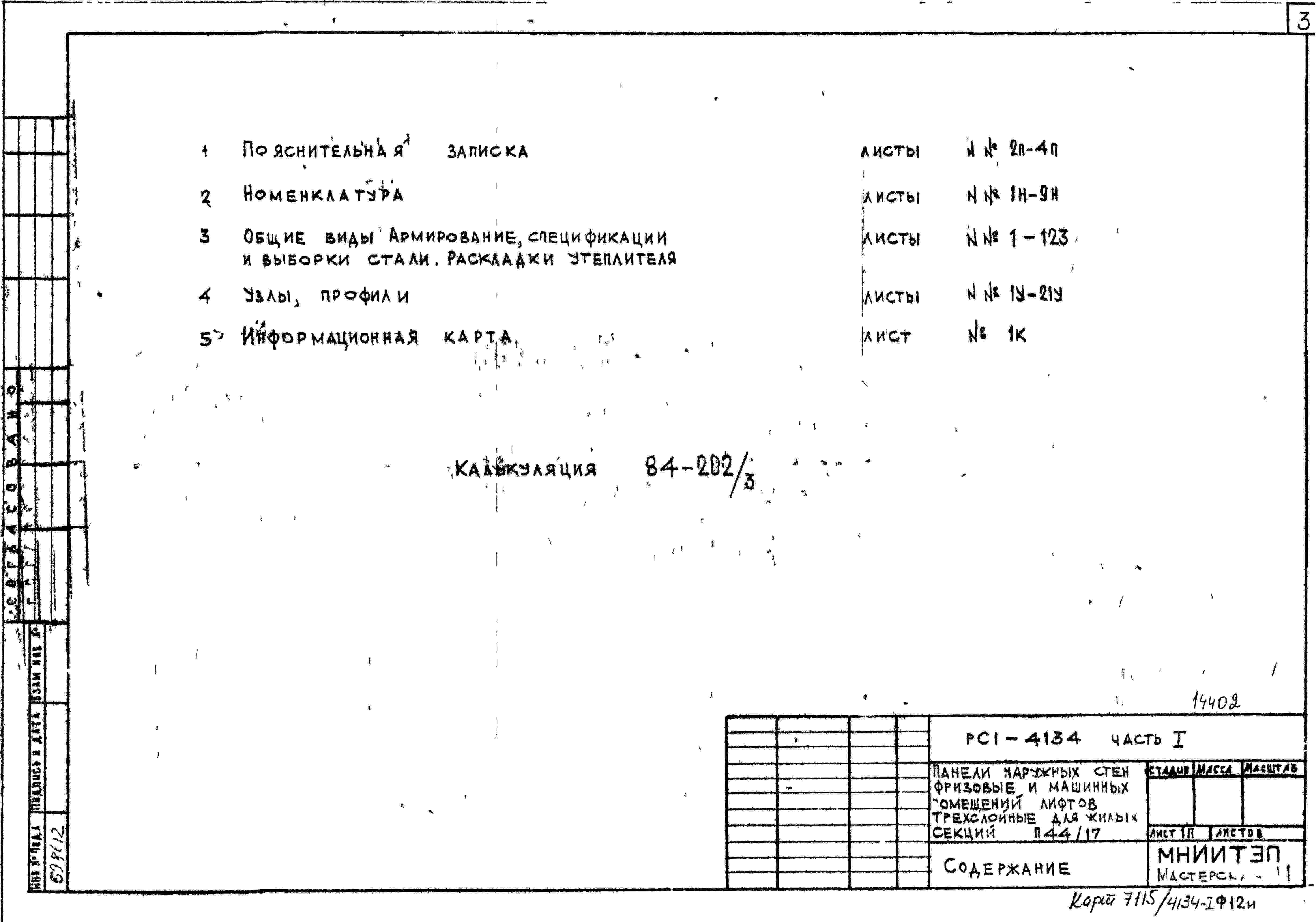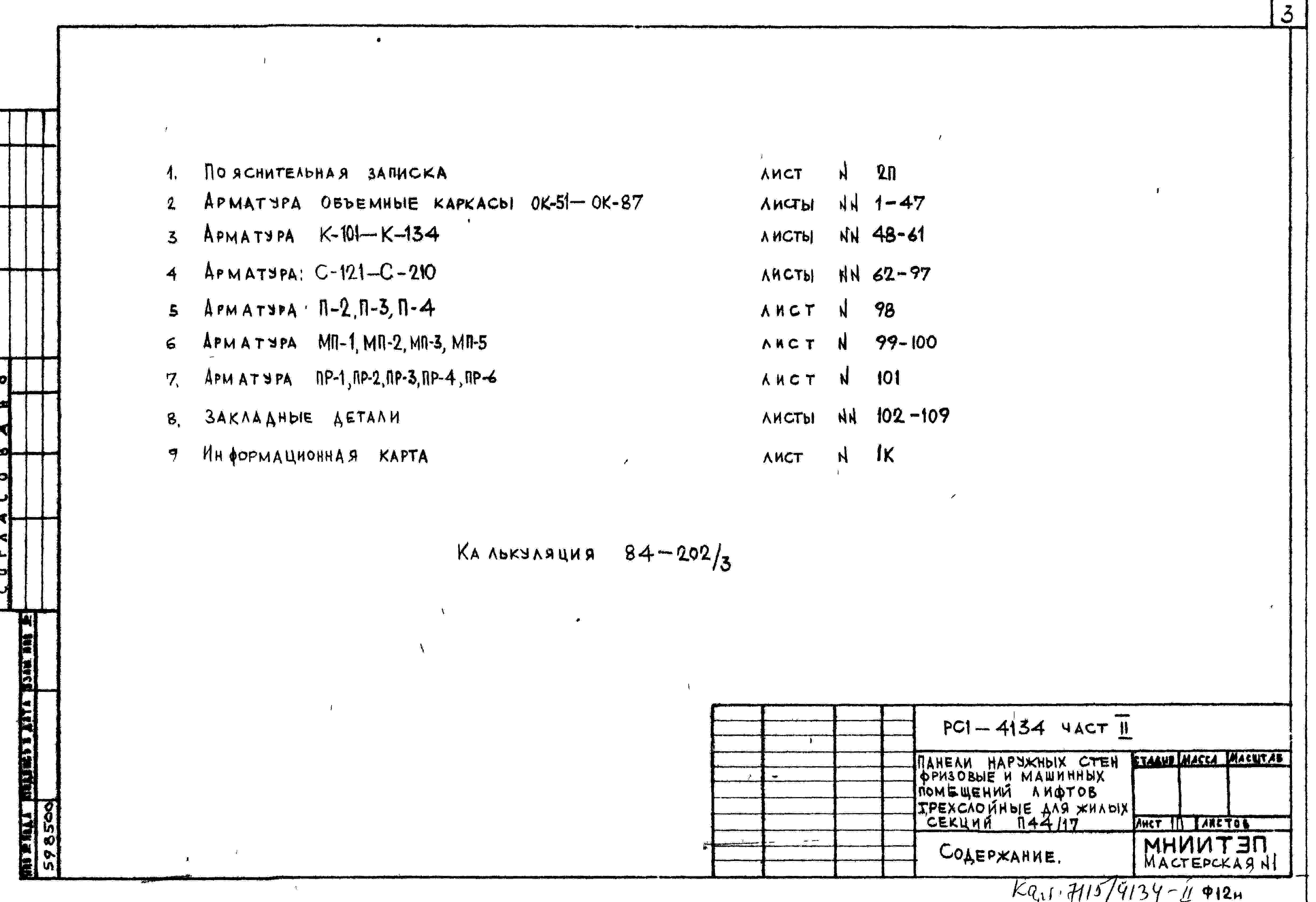 Шифр РС1 4134 Панели наружных стен и машинных помещений лифтов .Фризовые трехслойные для жилых секций П44/17 с повышенными теплозащитными качествами (1985 г.)