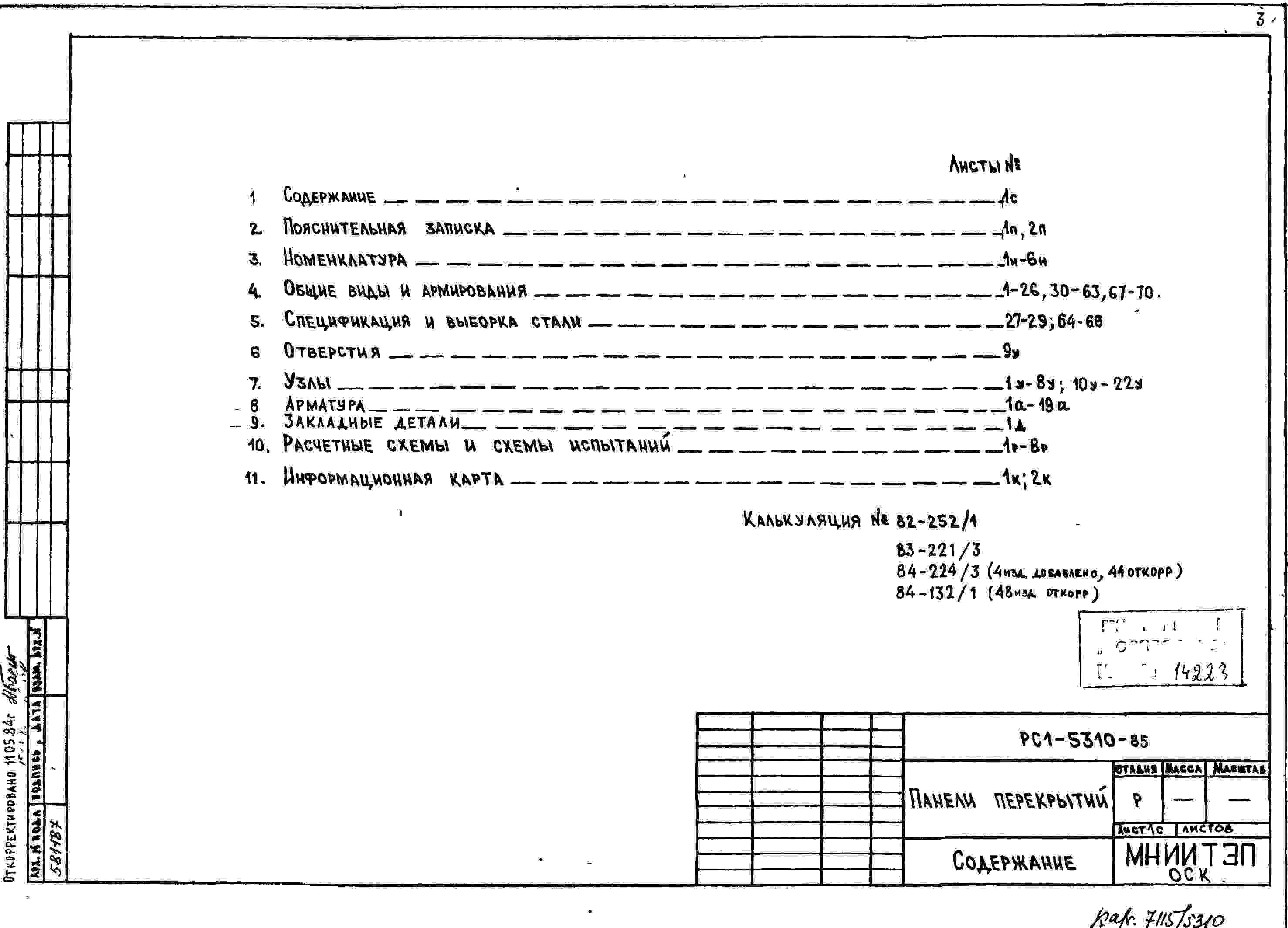 Шифр РС1 5310 Панели перекрытий сплошные толщиной 14 см (1983 г.)
