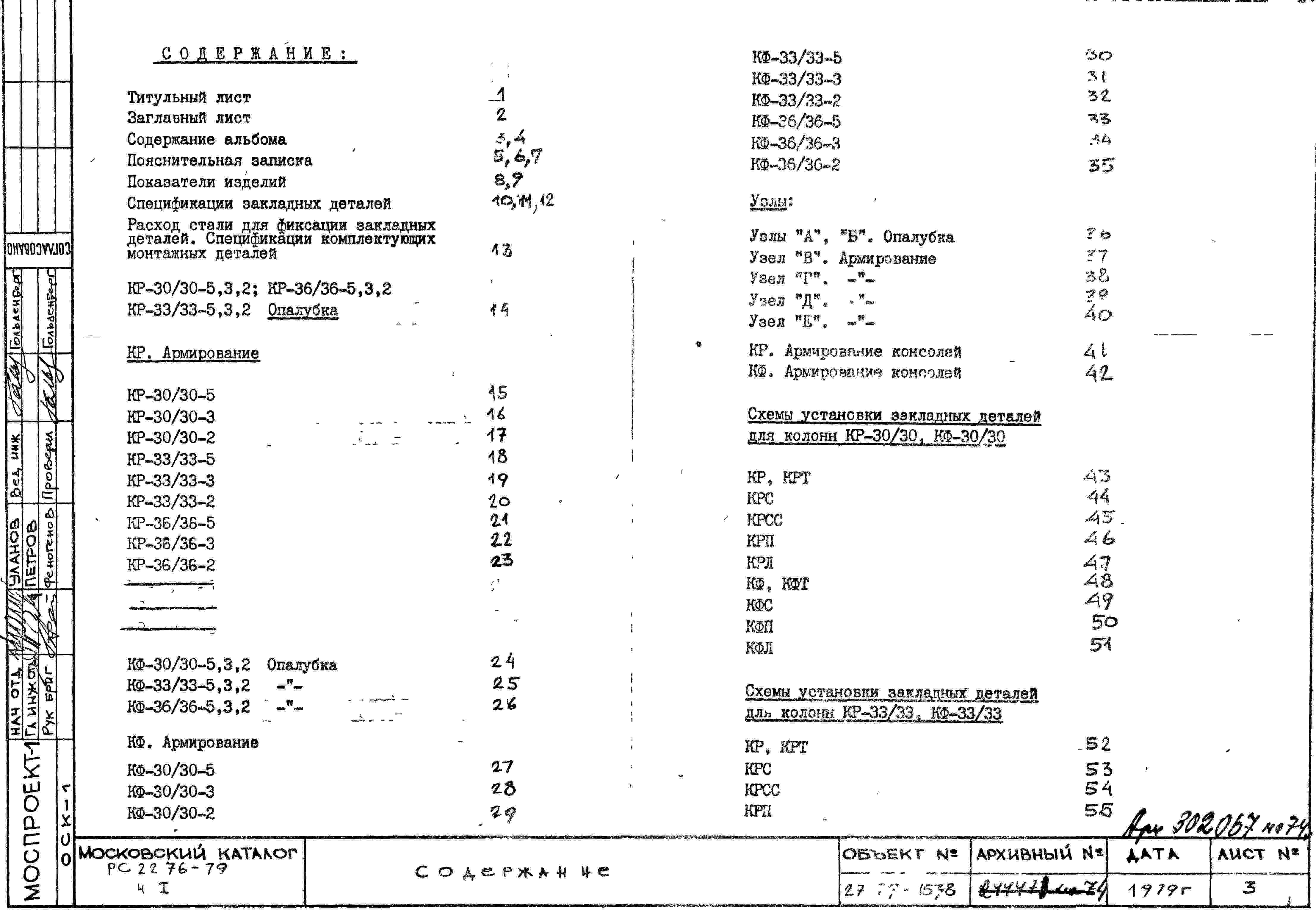 Шифр РС 2276-79 Колонны двухэтажные сечением 400х400 мм (1979 г.)