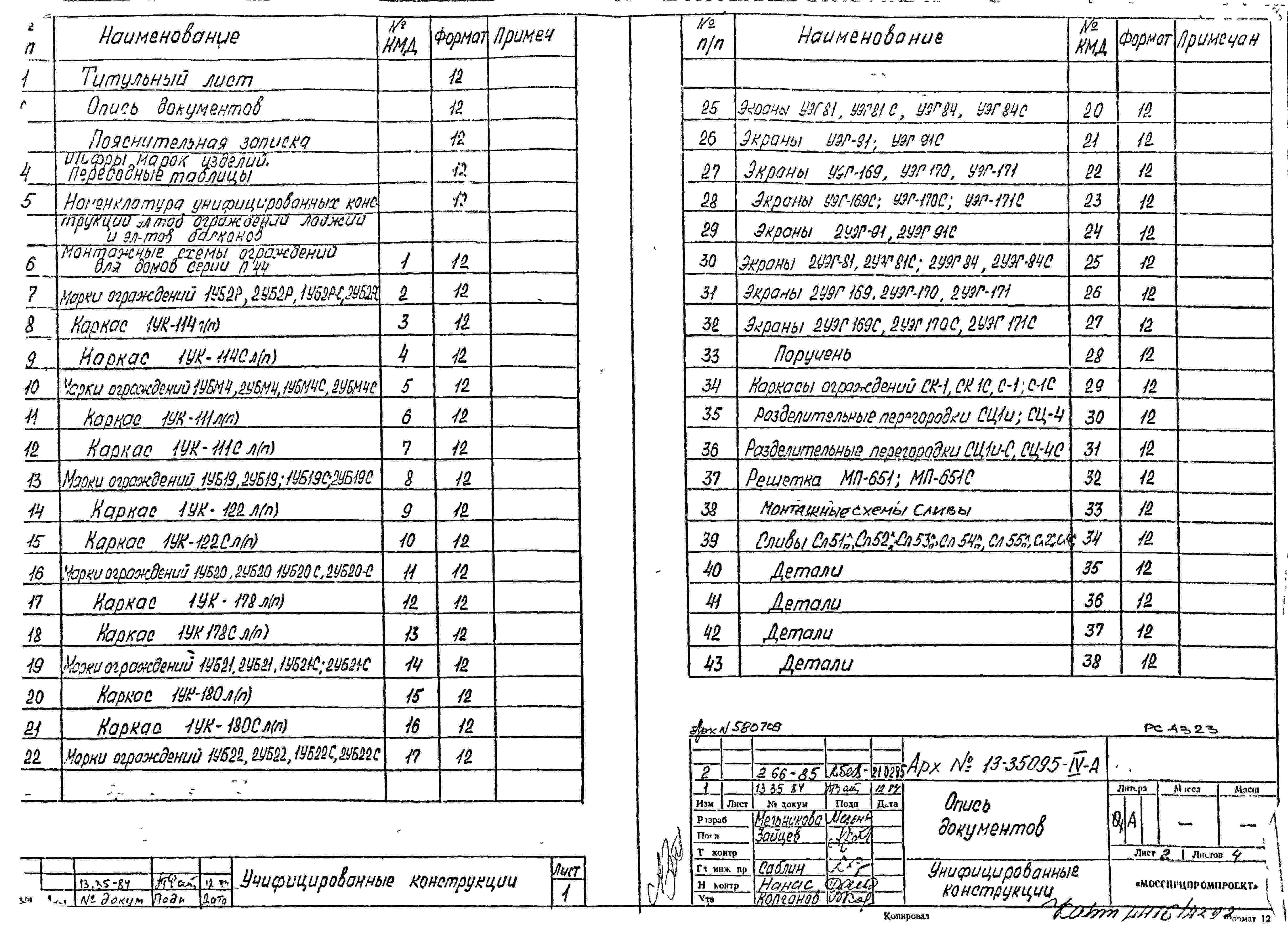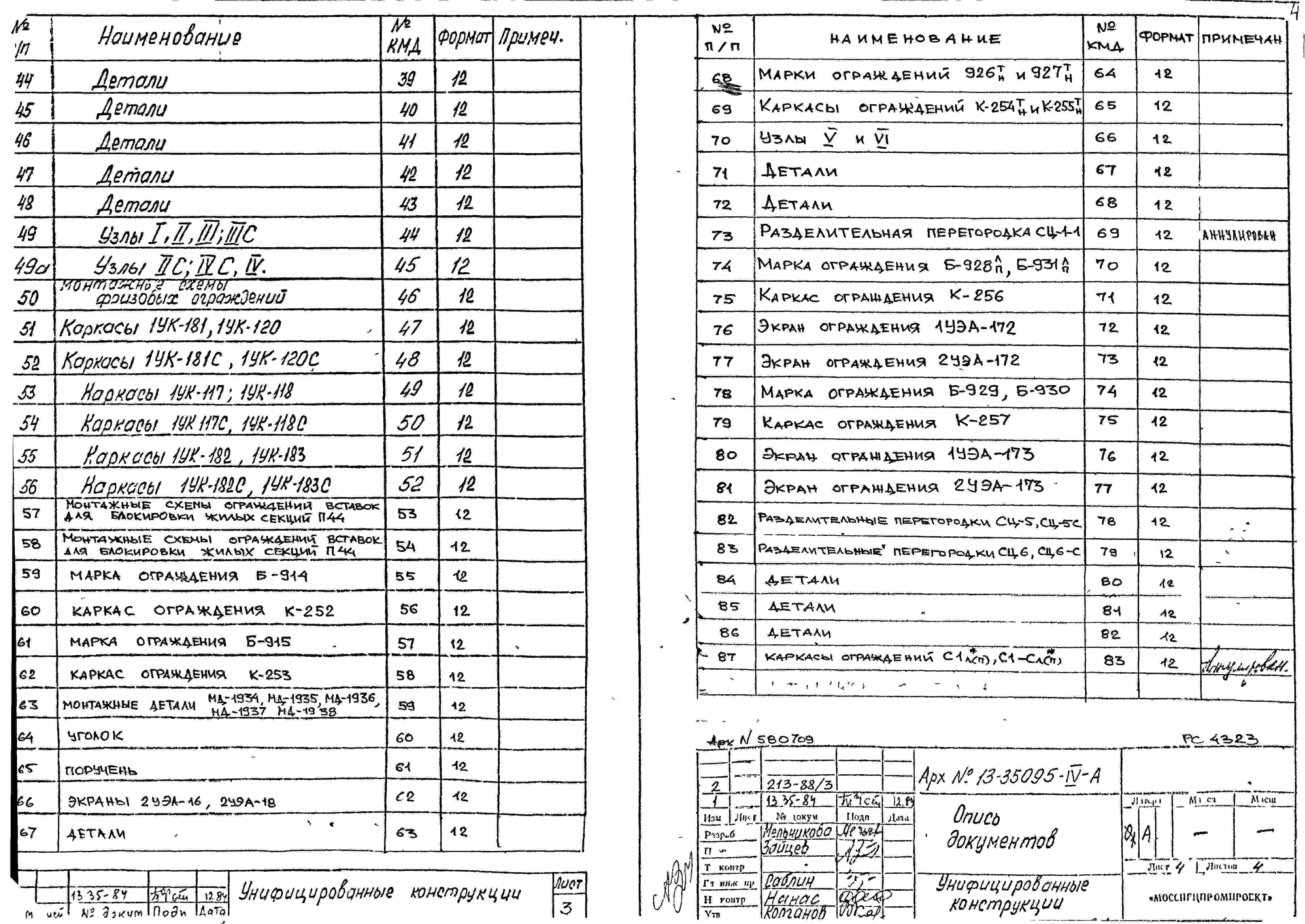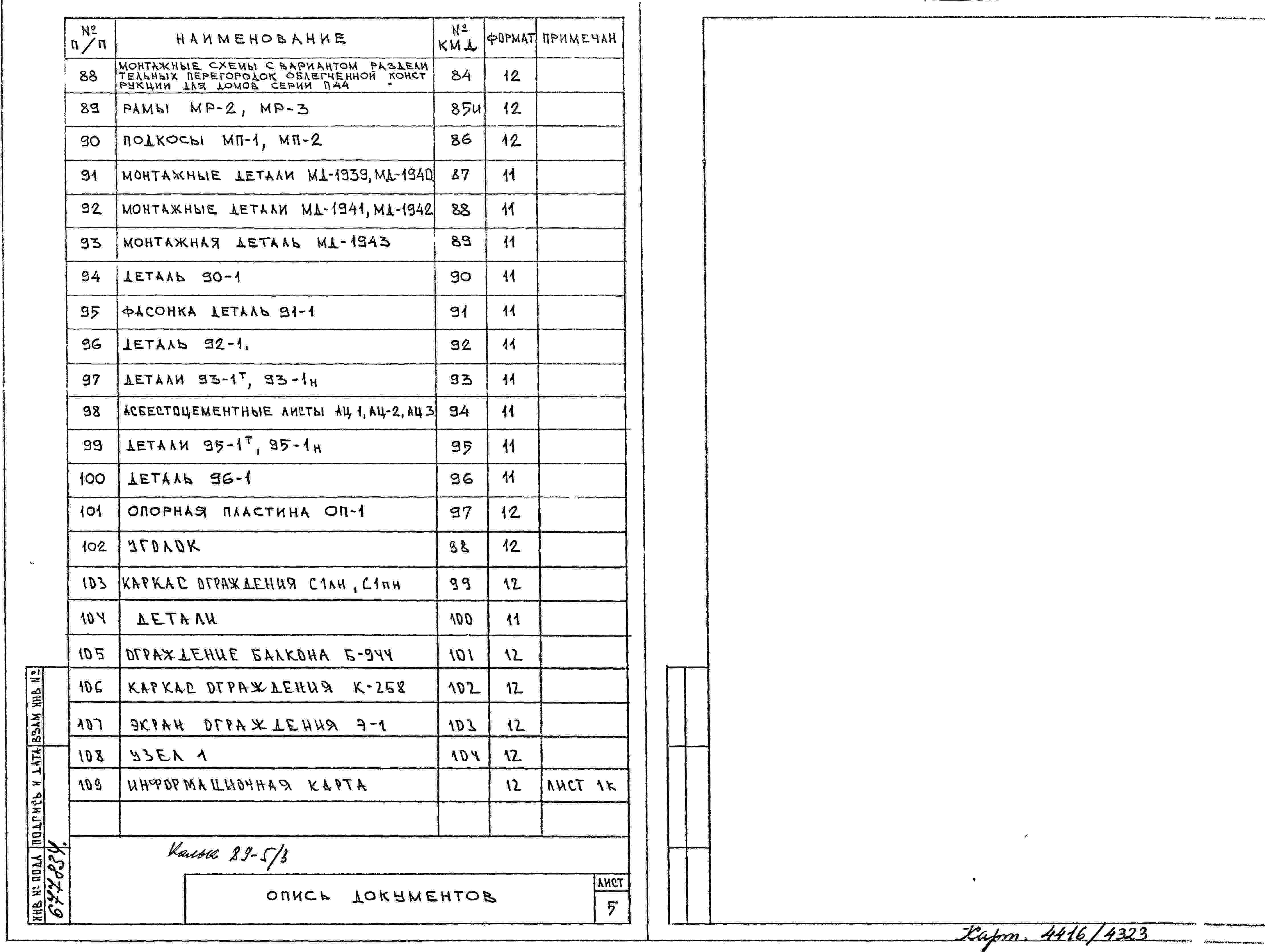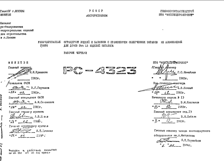 Шифр РС 4323 Унифицированные ограждения лоджий и балконов с применением облегченных экранов из алюминиевой гофры для домов П44 из изделий каталога (1984 г.)