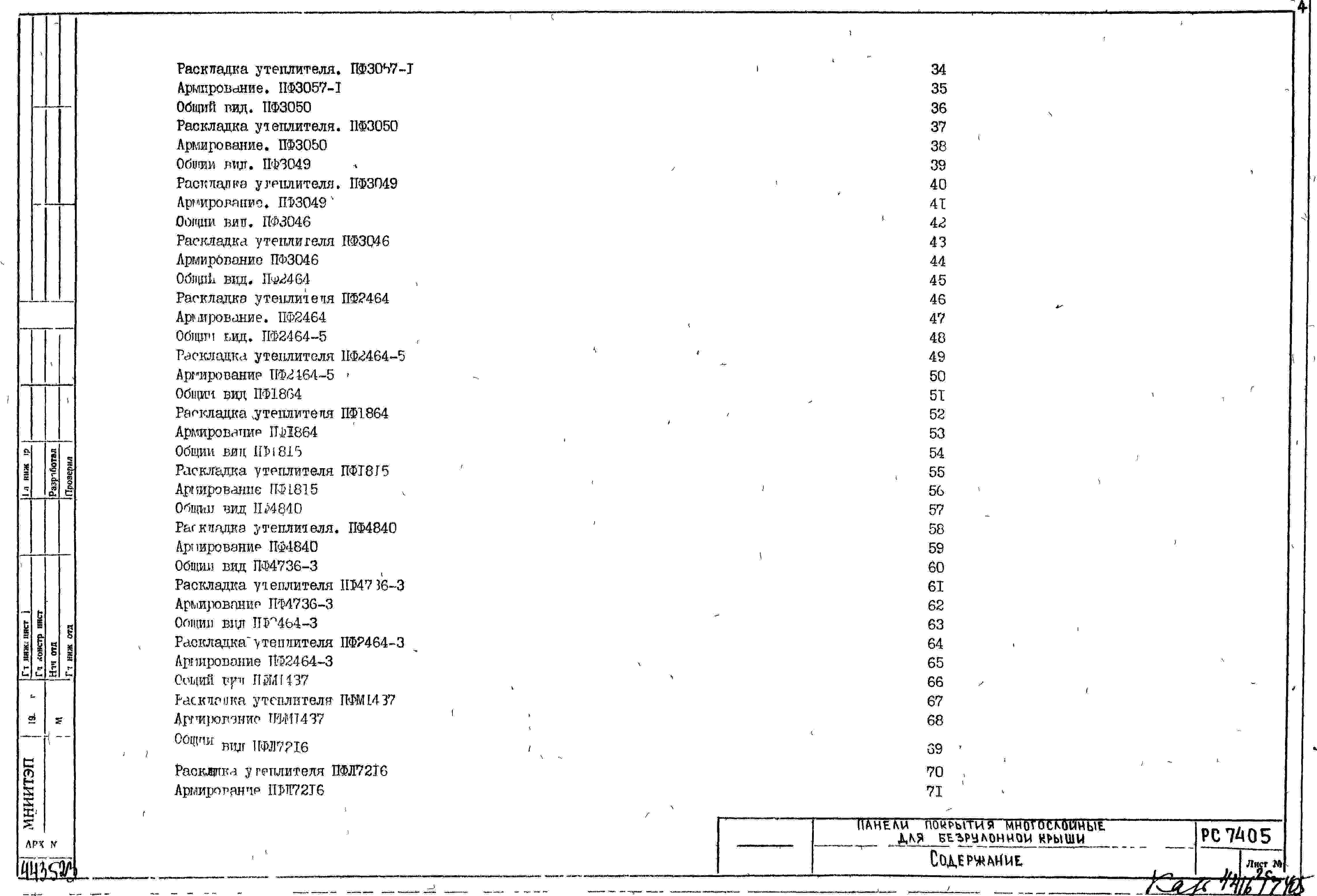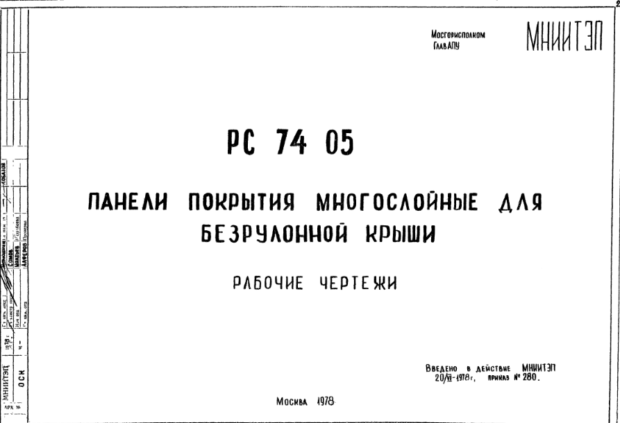 Шифр РС7405 Панели покрытия многослойные для безрулонной крыши (1978 г.)