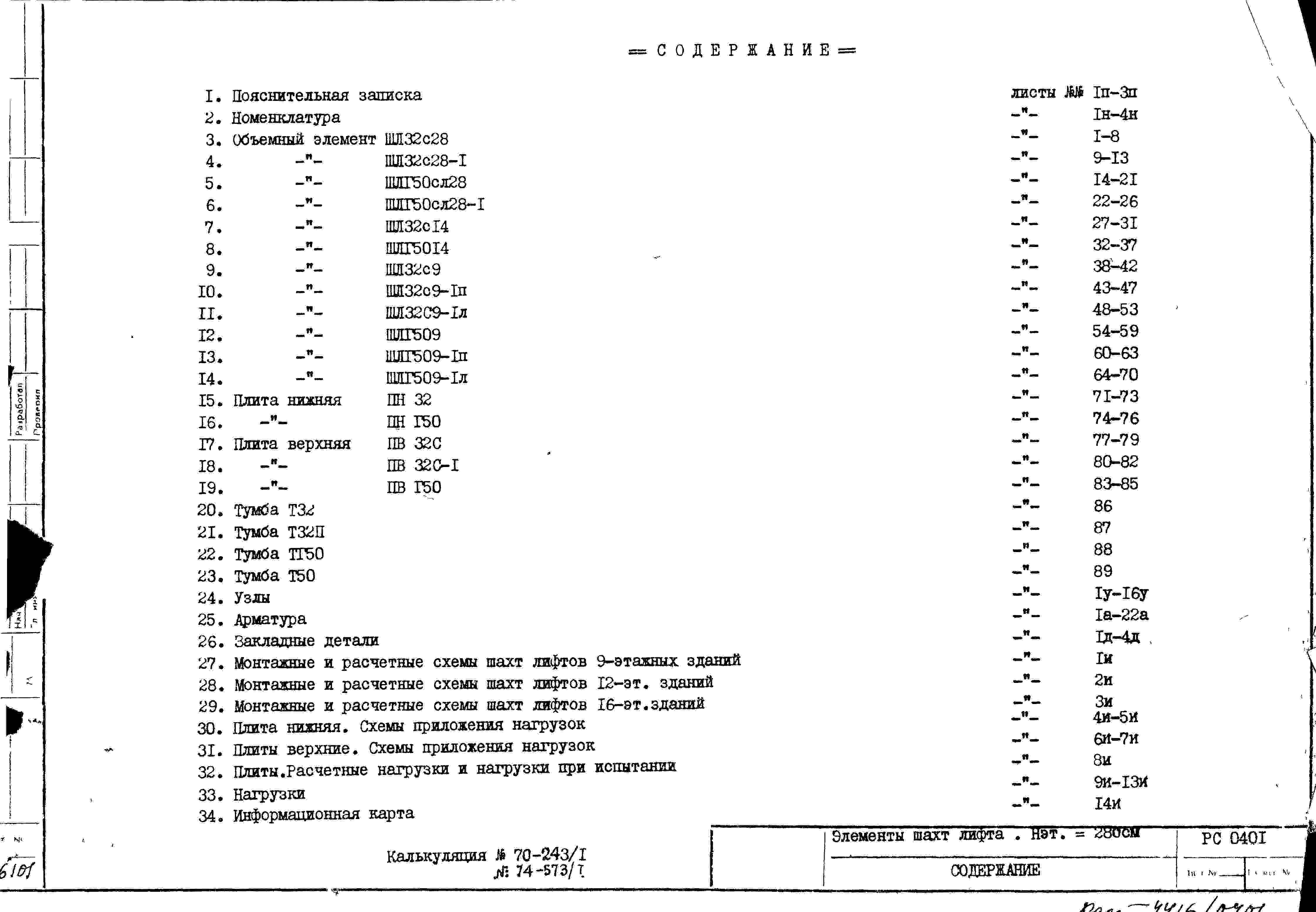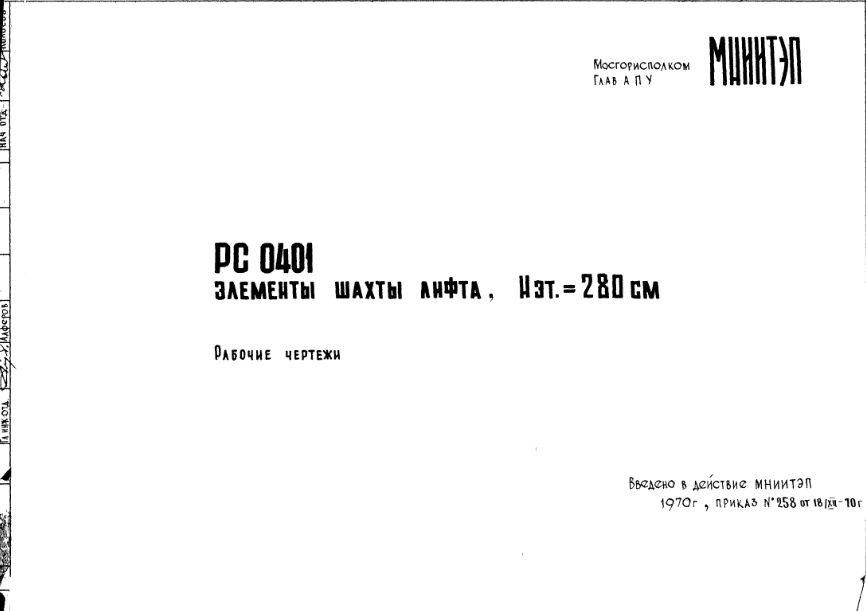 Шифр РС 0401 Элементы шахты лифта, Нэт. = 280 см (1970 г.)