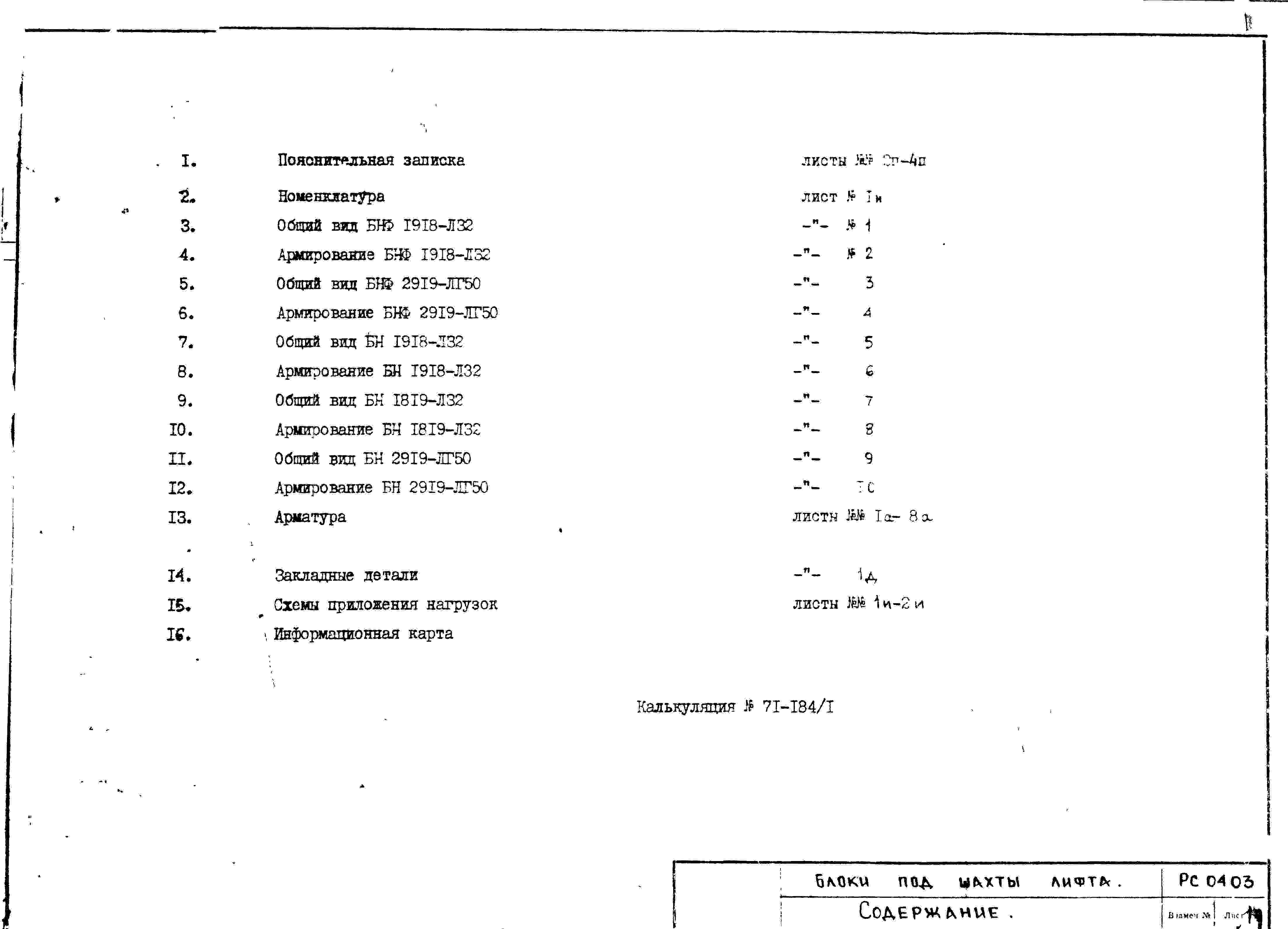 Шифр РС 0403 Блоки подставки под шахты лифта (1971 г.)