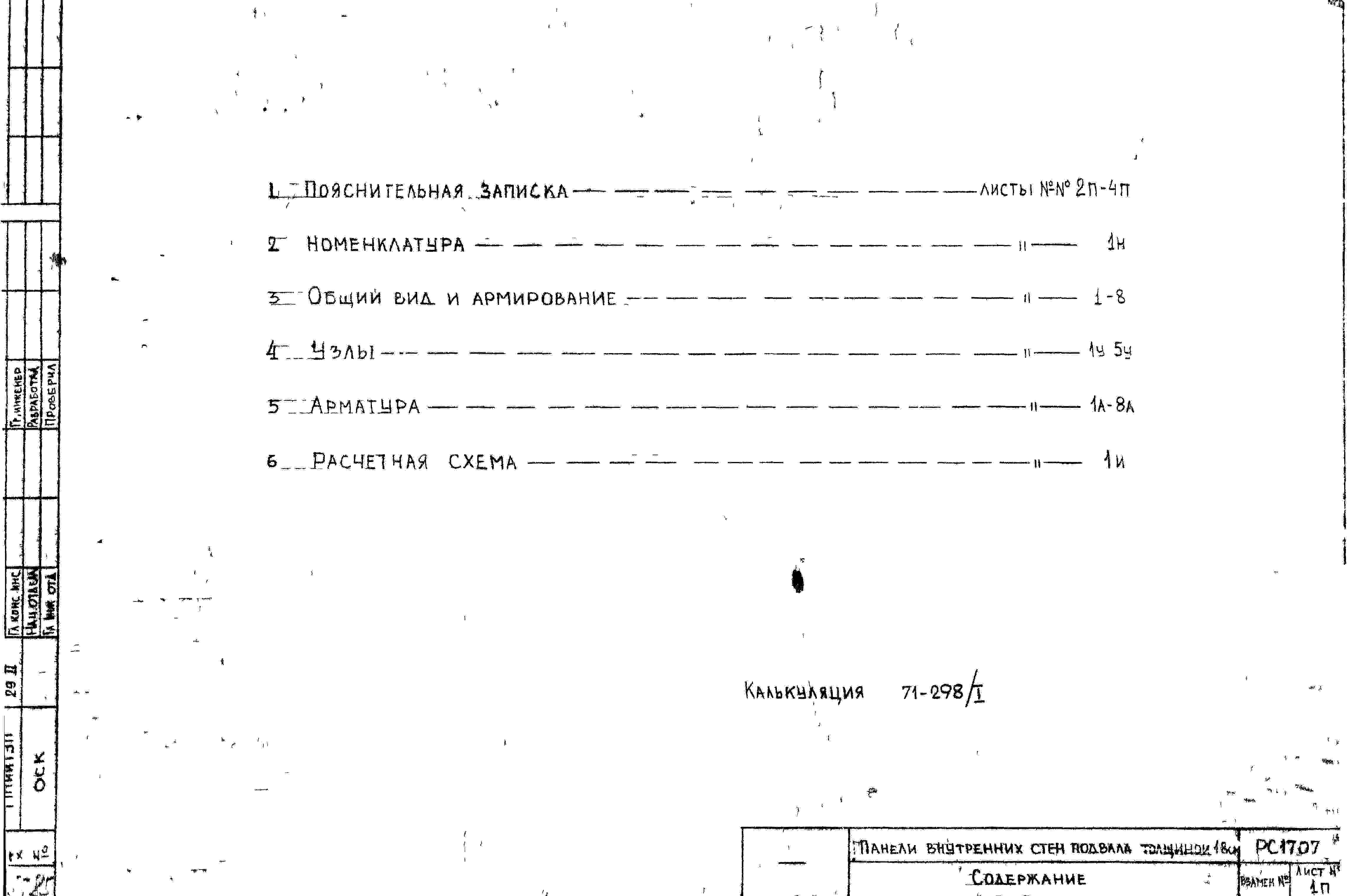 Шифр РС 1707 Панели внутренних стен подвала лестничной клетки (1972 г.)