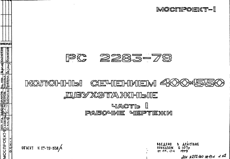 Шифр РС 2283-79 Колонны сечением 400х550 двухэтажные (1979 г.)