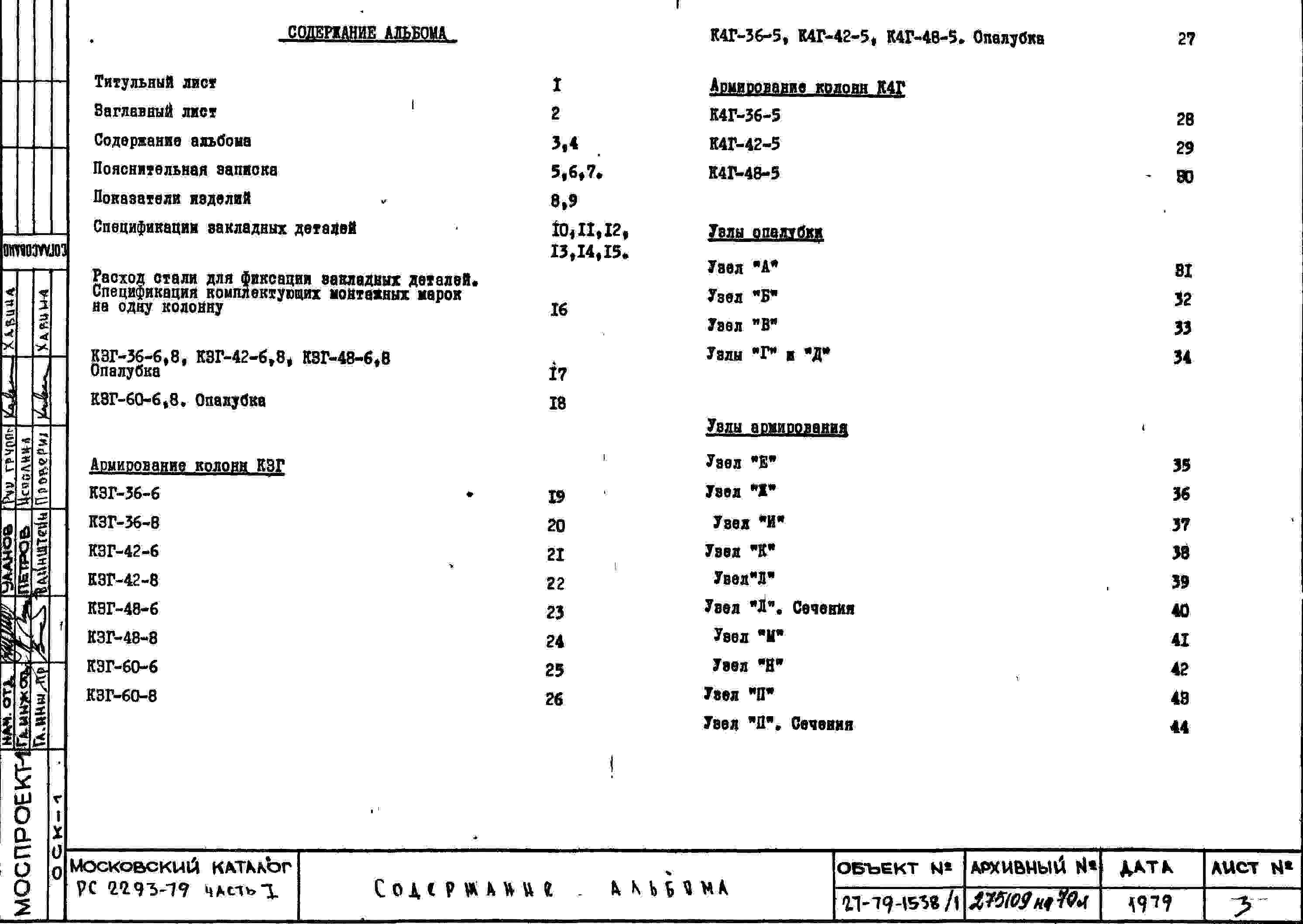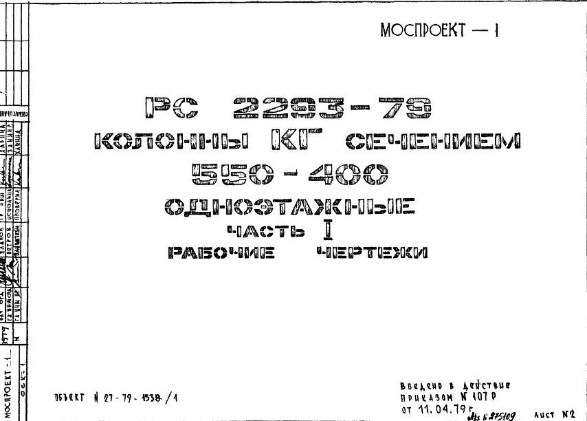 Шифр РС 2293-79 Колонны КБ сечением 550х400 одноэтажные (1979 г.)