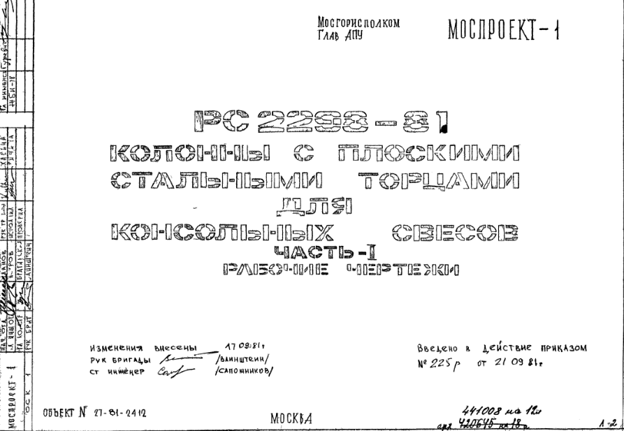 Шифр РС 2298-81 Колонны с плоскими стальными торцами для консольных свесов (1981 г.)