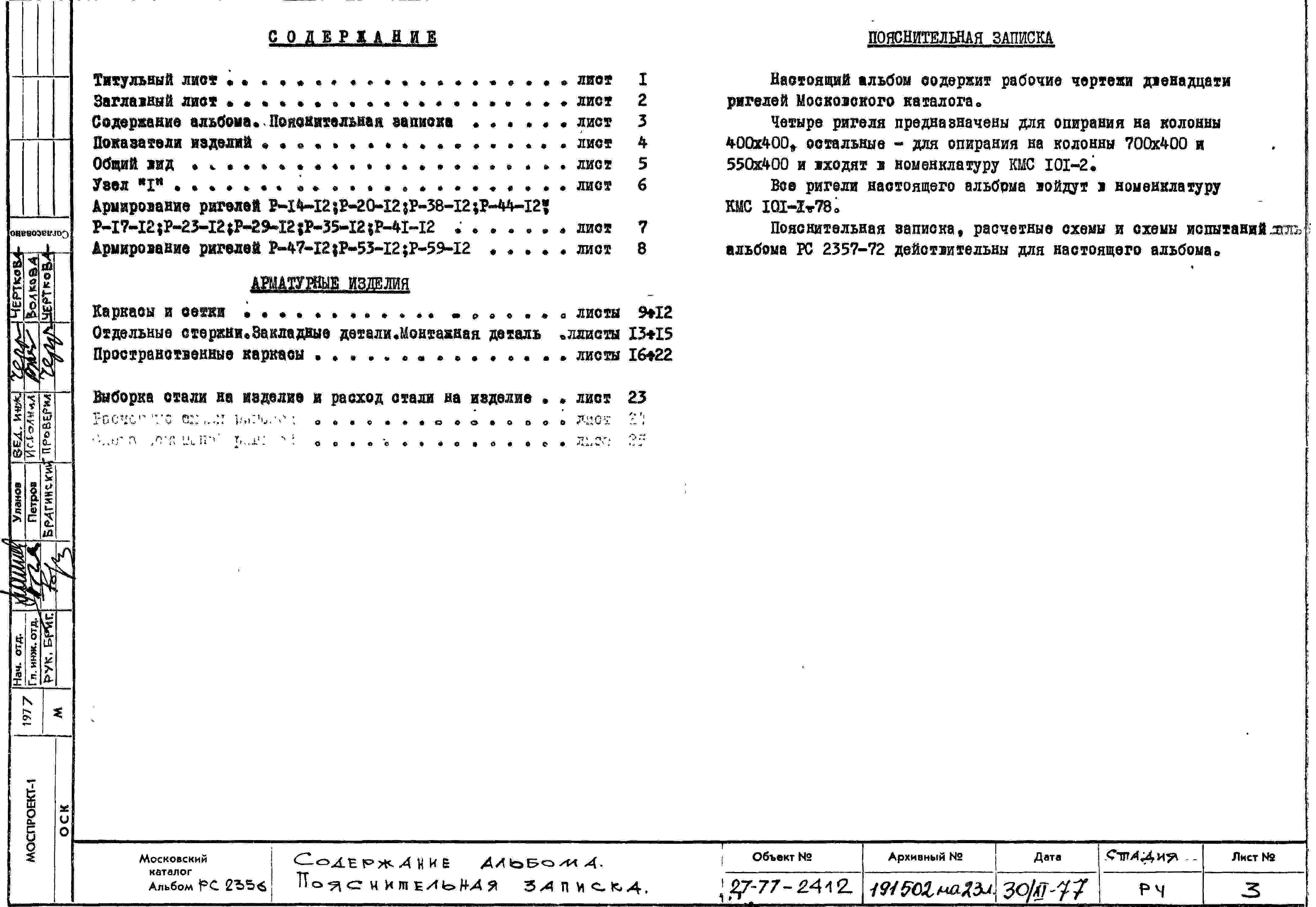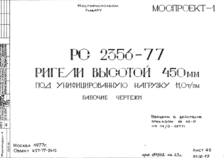 Шифр РС 2356-77 Ригели высотой 450 мм под унифицированную нагрузку 11,0 т/пм (1977 г.)