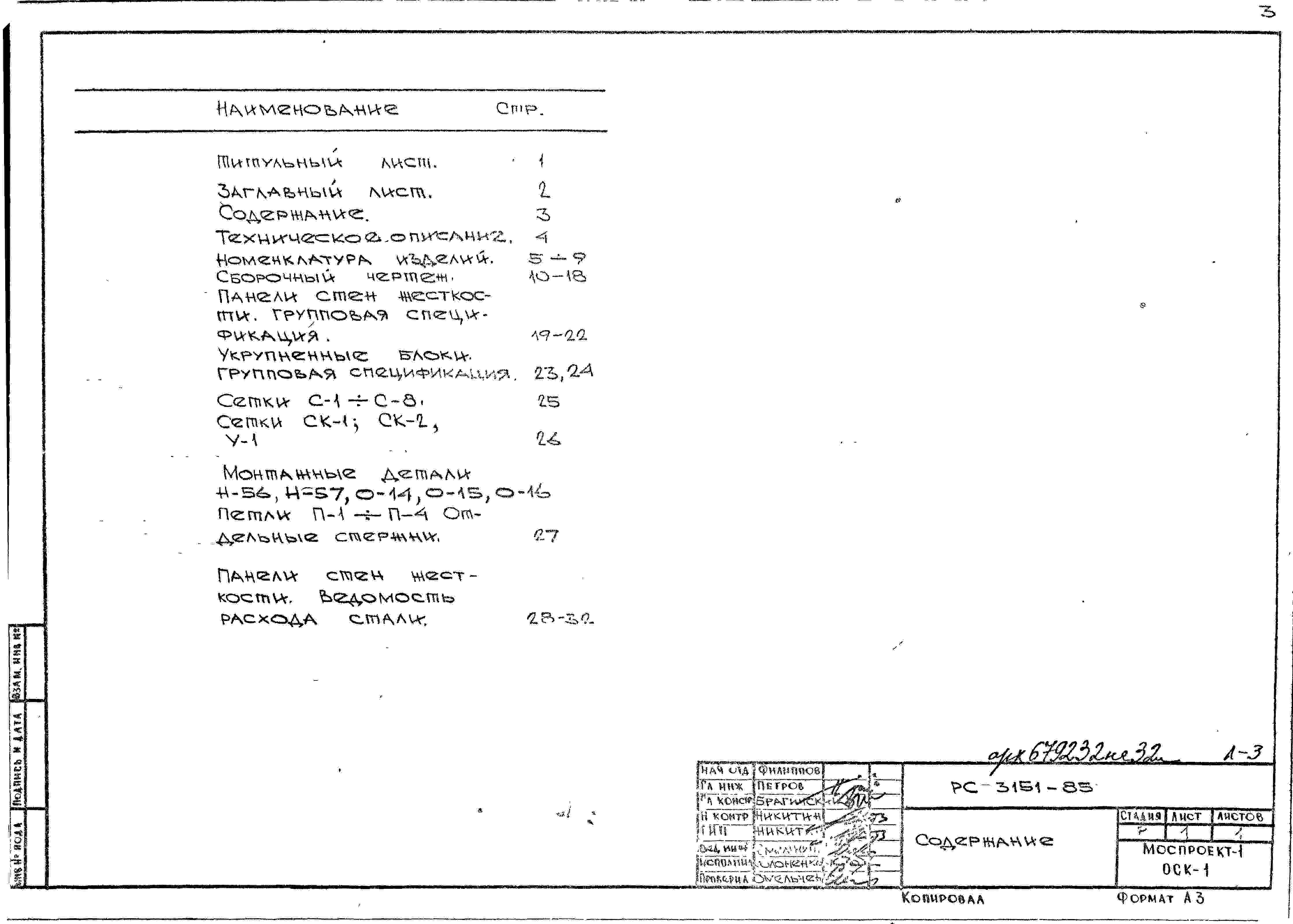 Шифр РС3151-85 Панели стен жесткости глухие для этажей 2,4; 3,0; 3,3; 3,6 м (1985 г.)